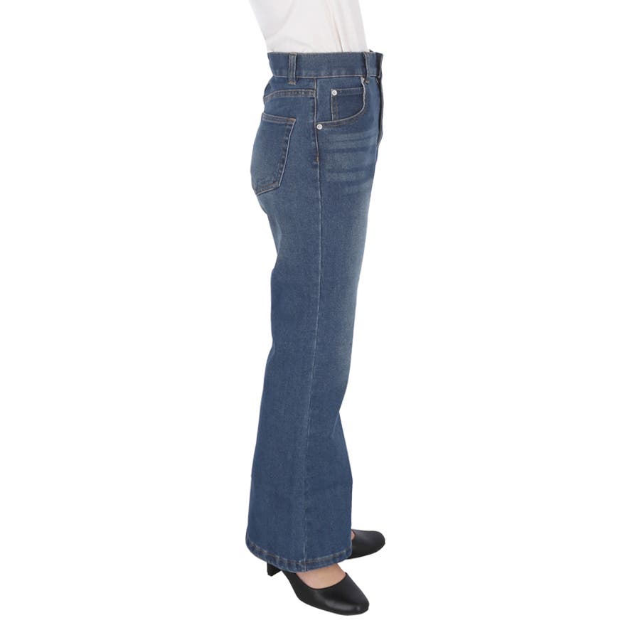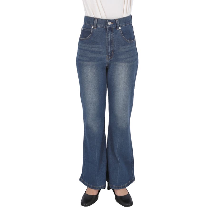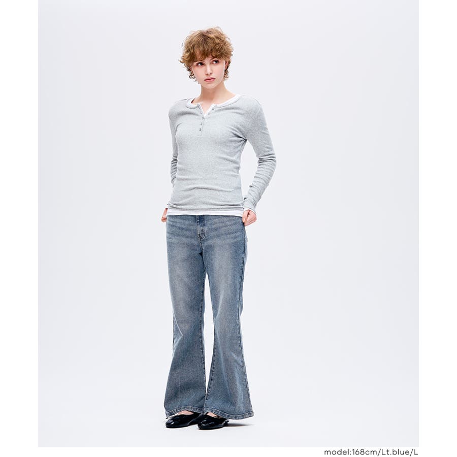 膝下から緩やかに広がるフレアシルエットで、脚のラインを美しく見せてくれるデニムパンツ。