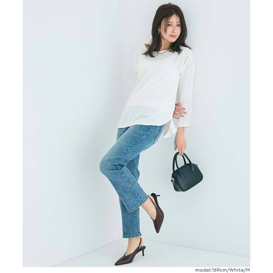 デニム合わせでカジュアルに、スカートで女性らしく、幅広いスタイルに取り入れられる万能トップスです。