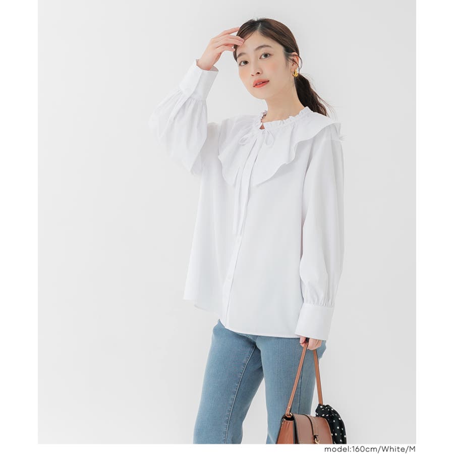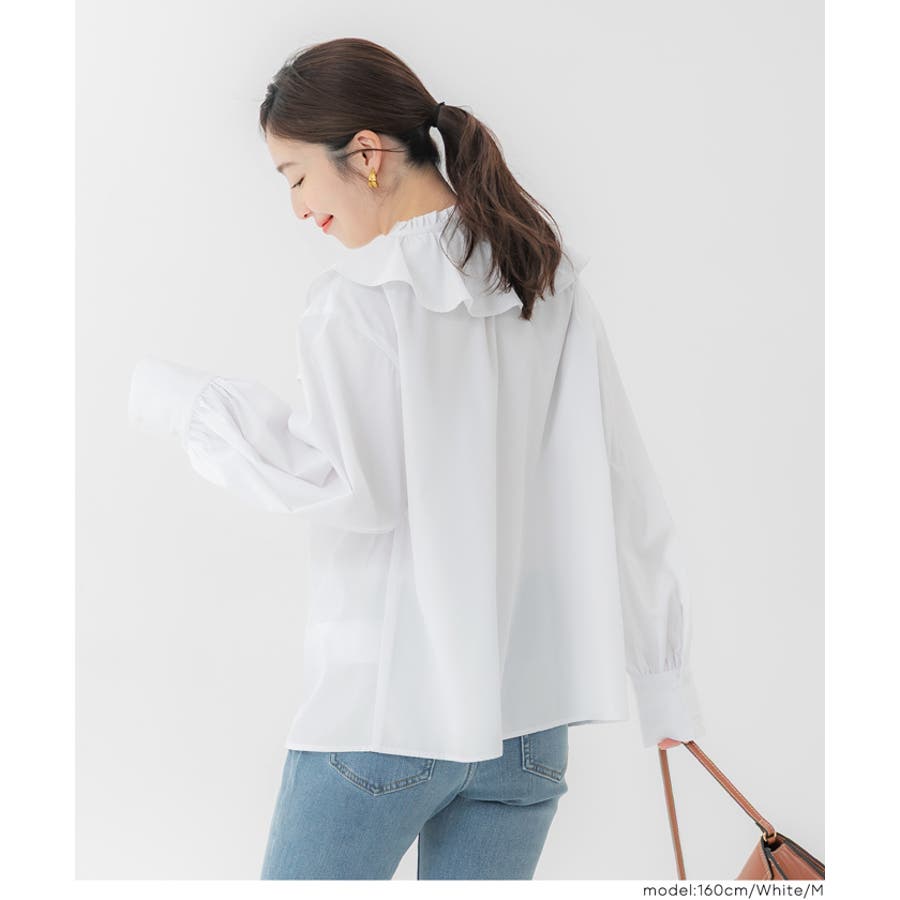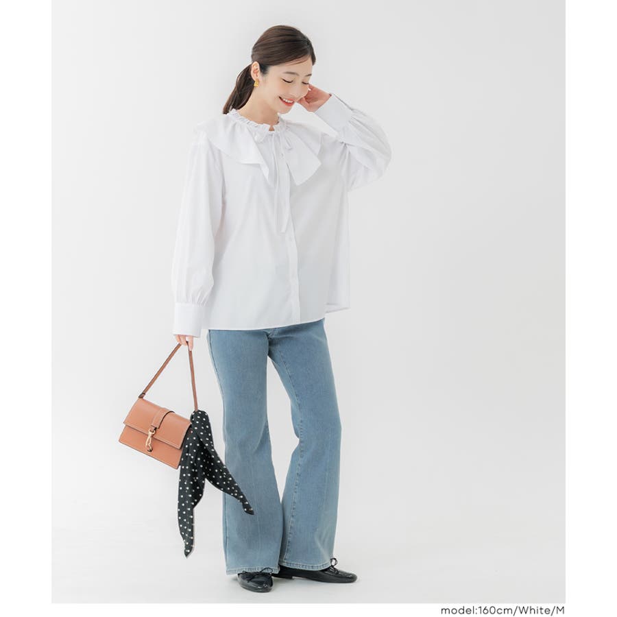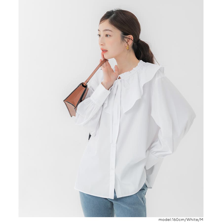 ・ニットやスウェットとのレイヤードにも相性抜群で、襟元のフリルが程よいアクセントになります。