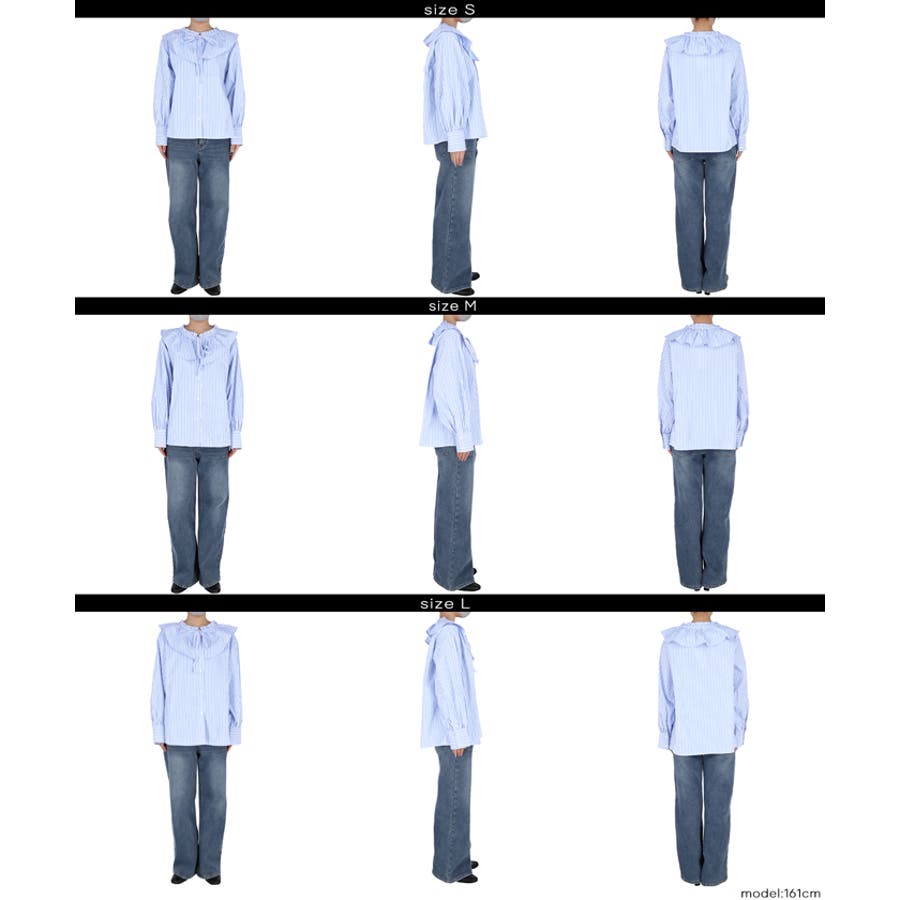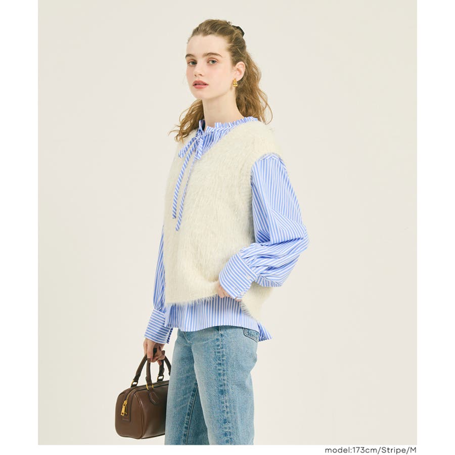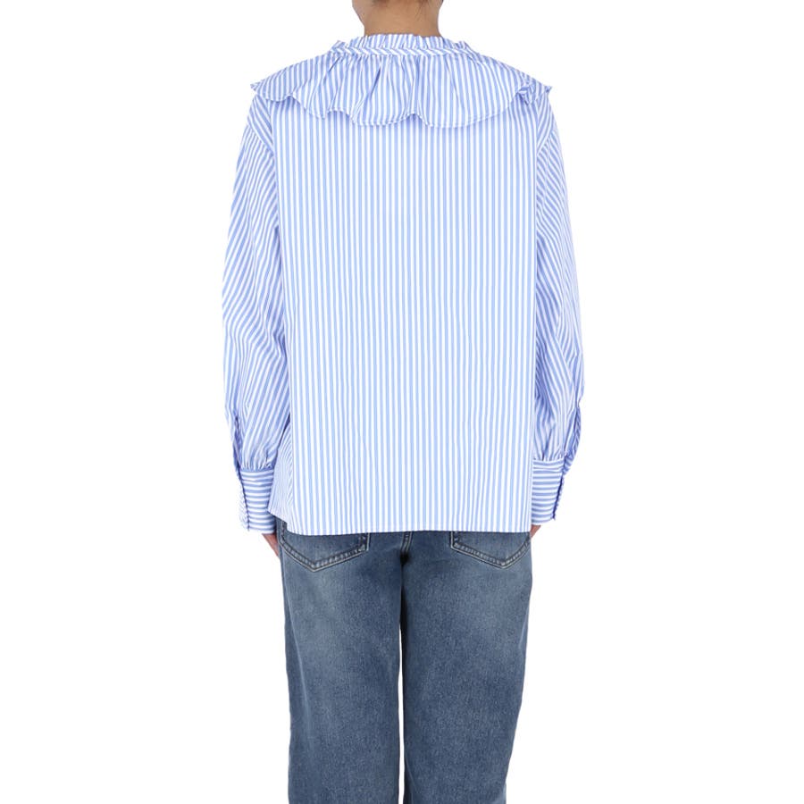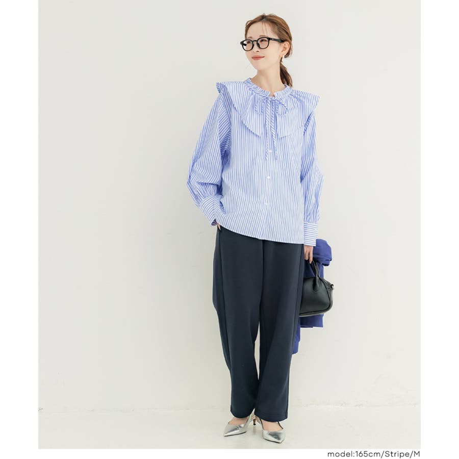 ・ニットやスウェットとのレイヤードにも相性抜群で、襟元のフリルが程よいアクセントになります。