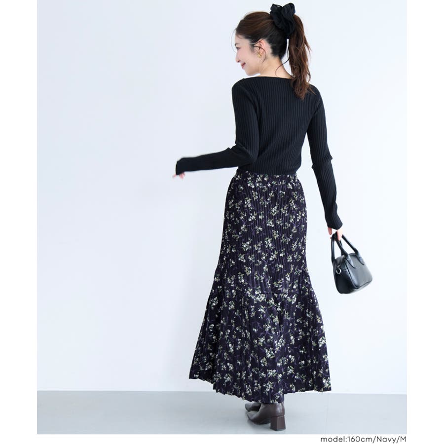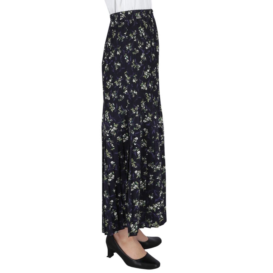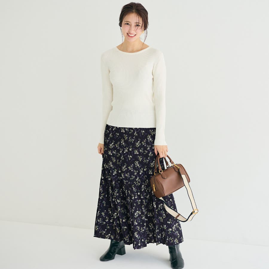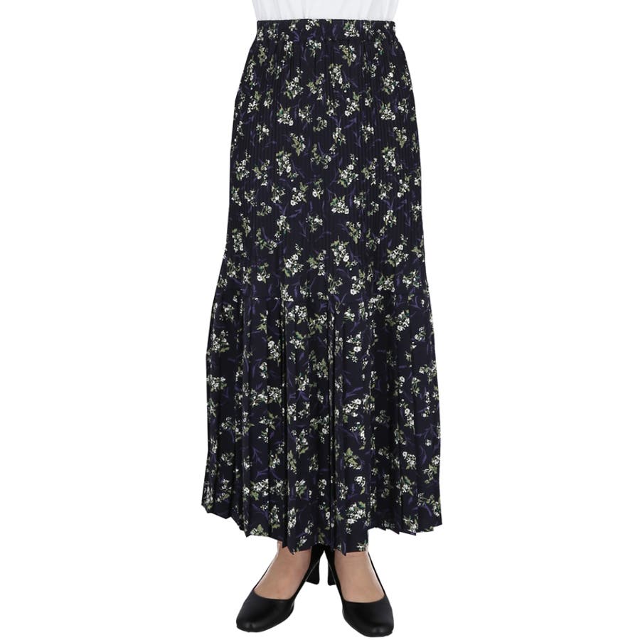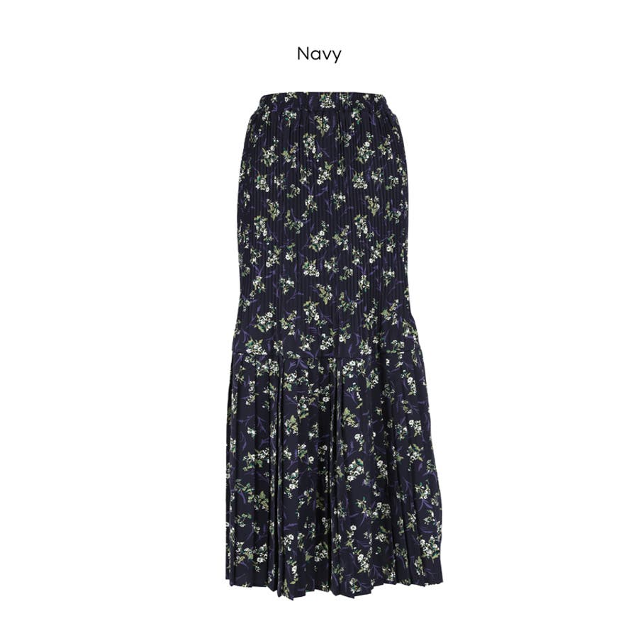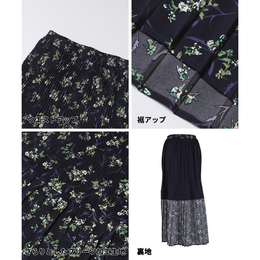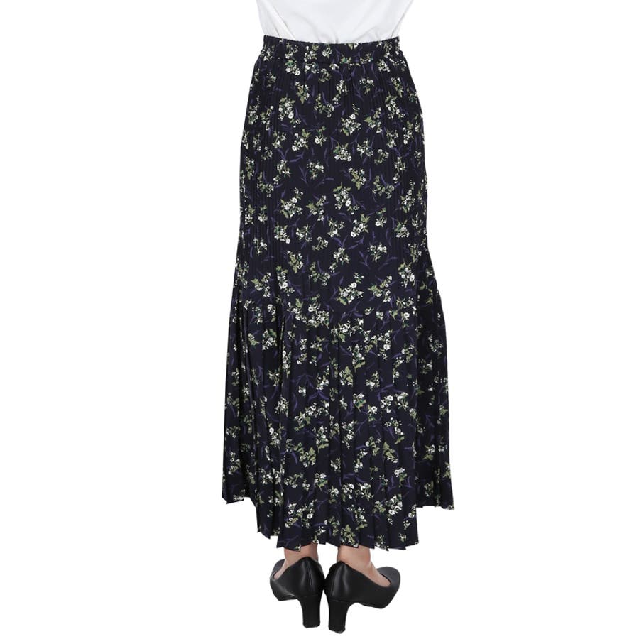 ・繊細なプリーツと上品な花柄が女性らしさを引き立てるロングスカート。