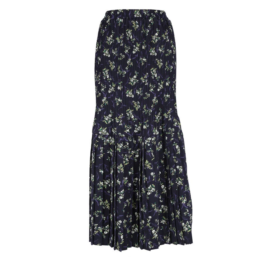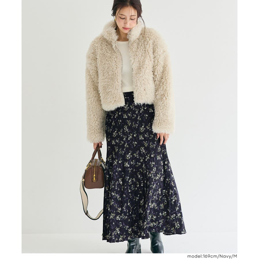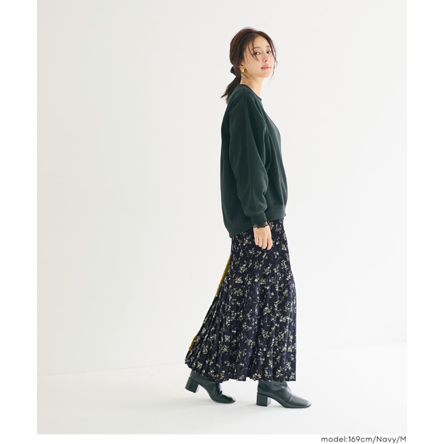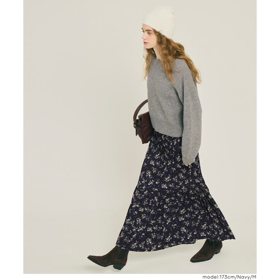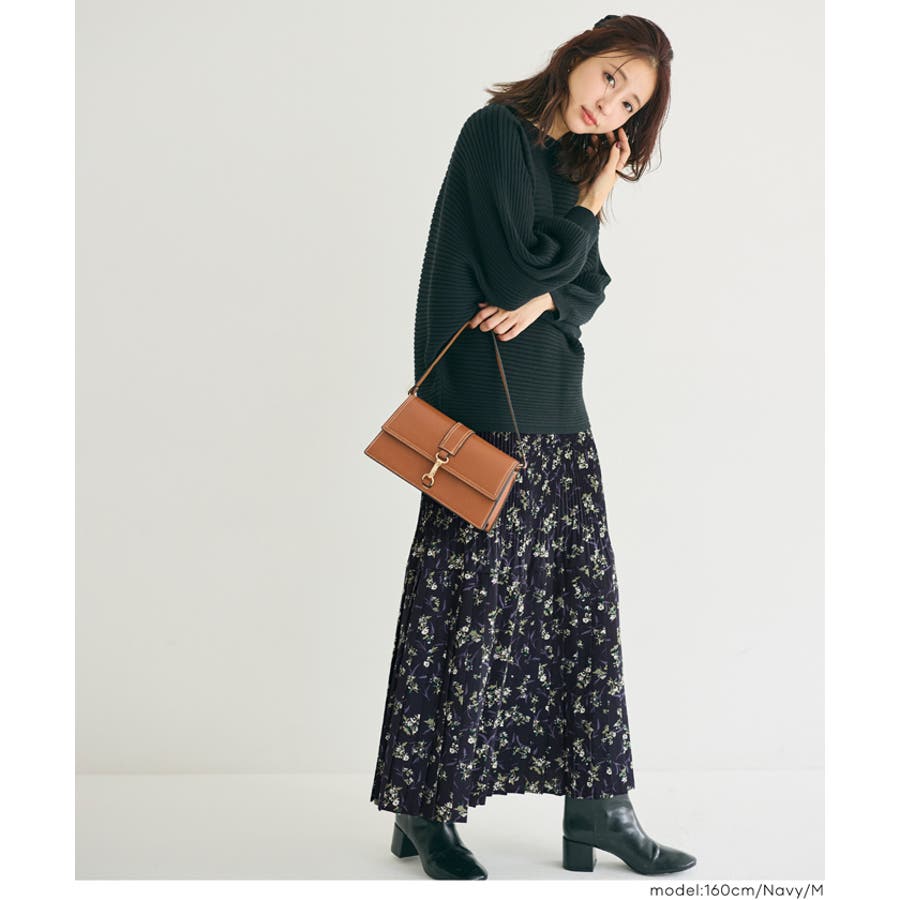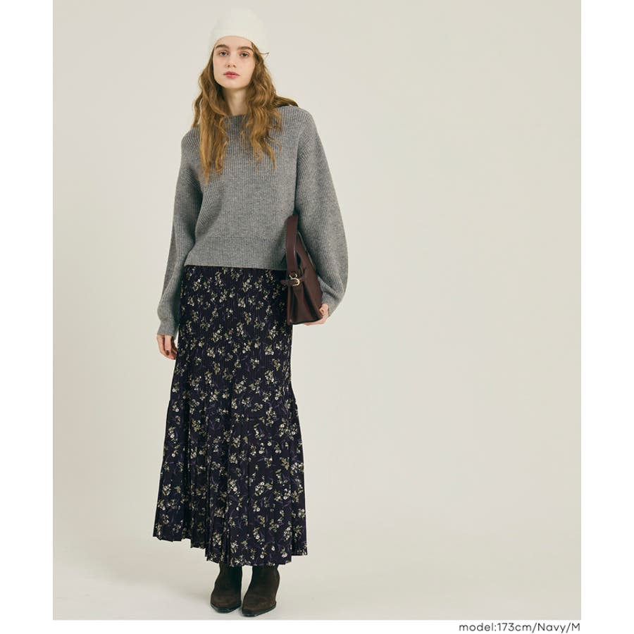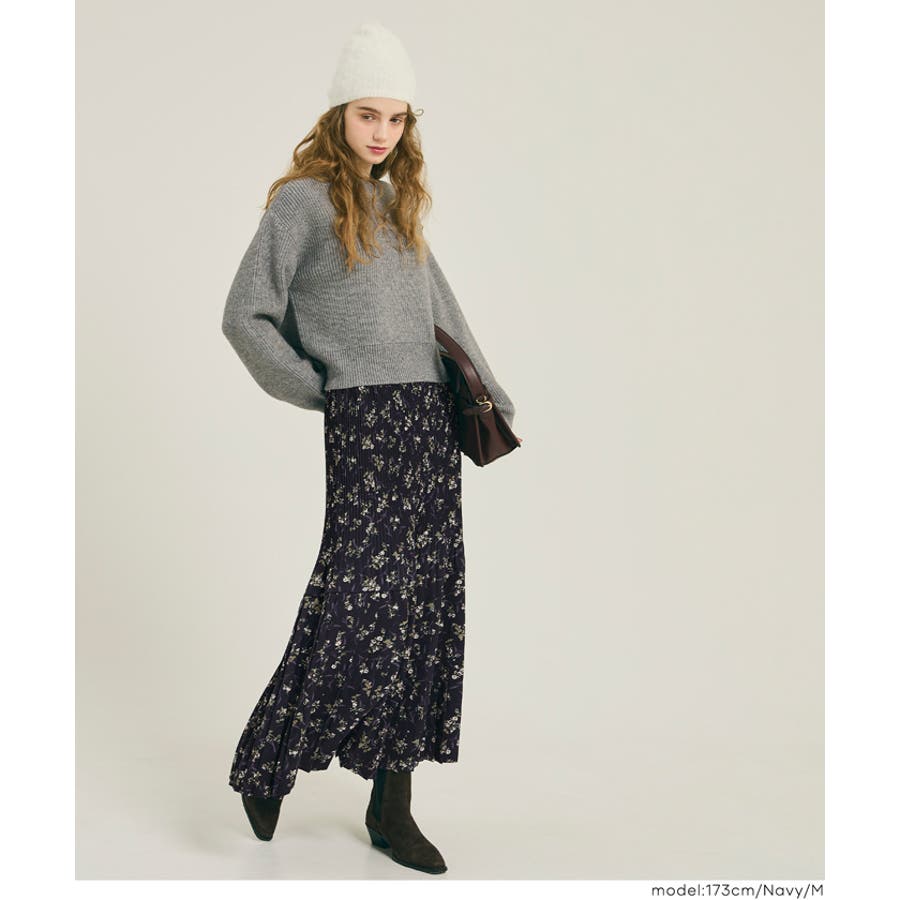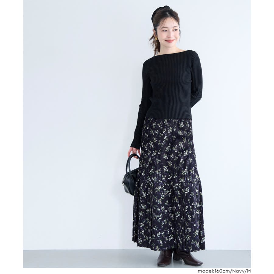 ・繊細なプリーツと上品な花柄が女性らしさを引き立てるロングスカート。