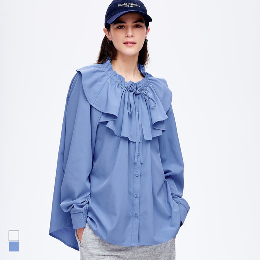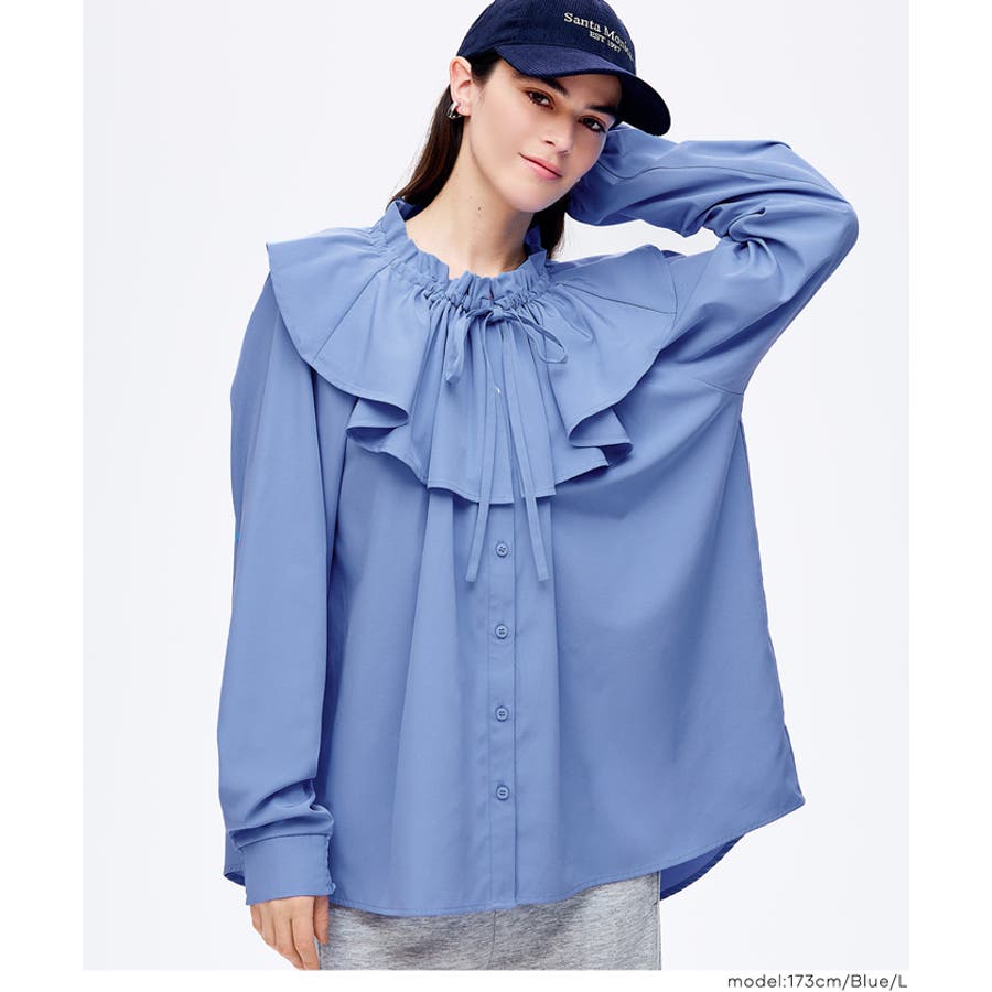 トップス ブラウス シャツ ビッグカラー ギャザー フリル リボン 袖口ゴム フロントボタン きれいめ 無地 長袖 ウォッシャブル 26ss コカ COCA coca COCA coca おしゃれ 可愛い きれいめ 秋 秋服 冬 冬服 おとな 大人 女性ファッション 韓国 カジュアル プチプラ 10代 20代 30代 40代 50代 オフィス ホーム シンプル オフィスカジュアル