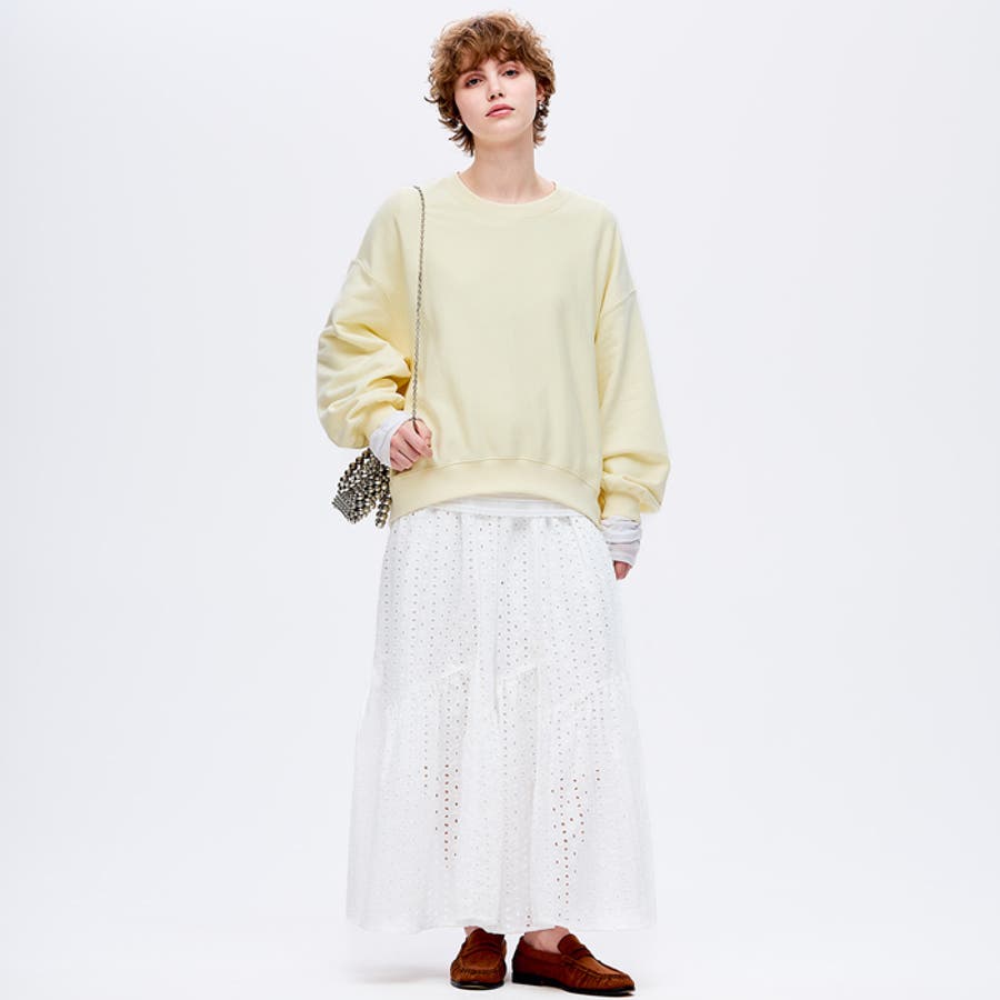 ・シンプルなTシャツやニットを合わせてスカートを主役に。