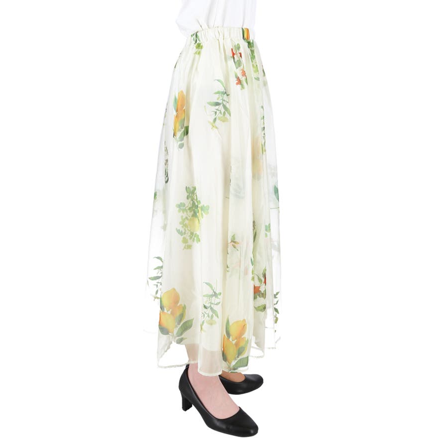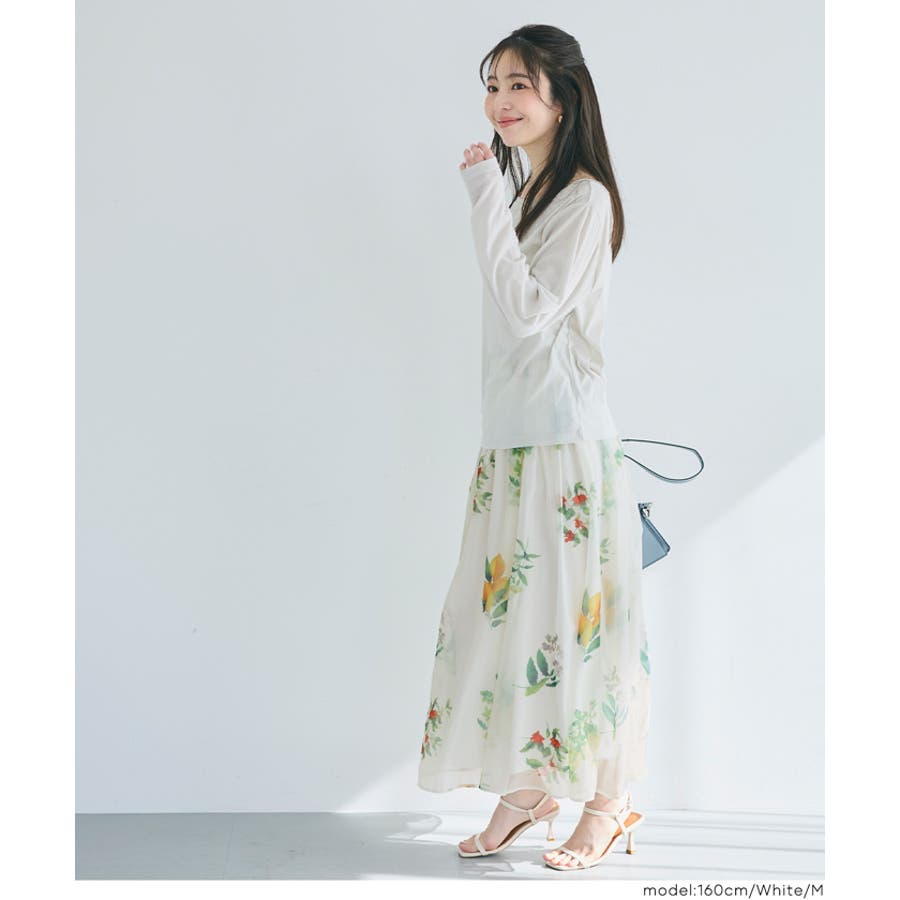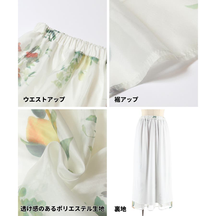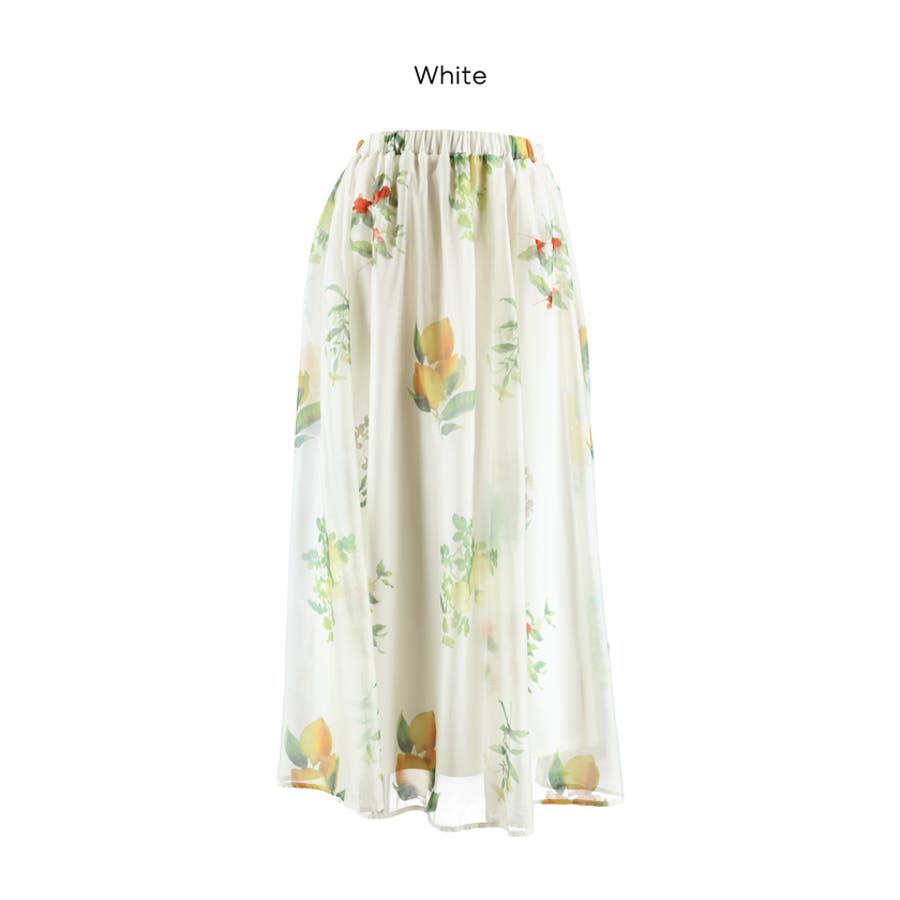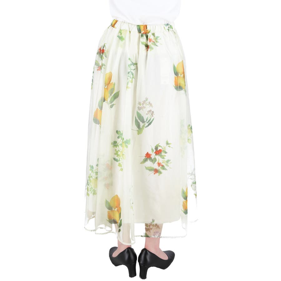 軽やかなオーガンジー素材に、繊細なフラワープリントをのせたフレアスカート。