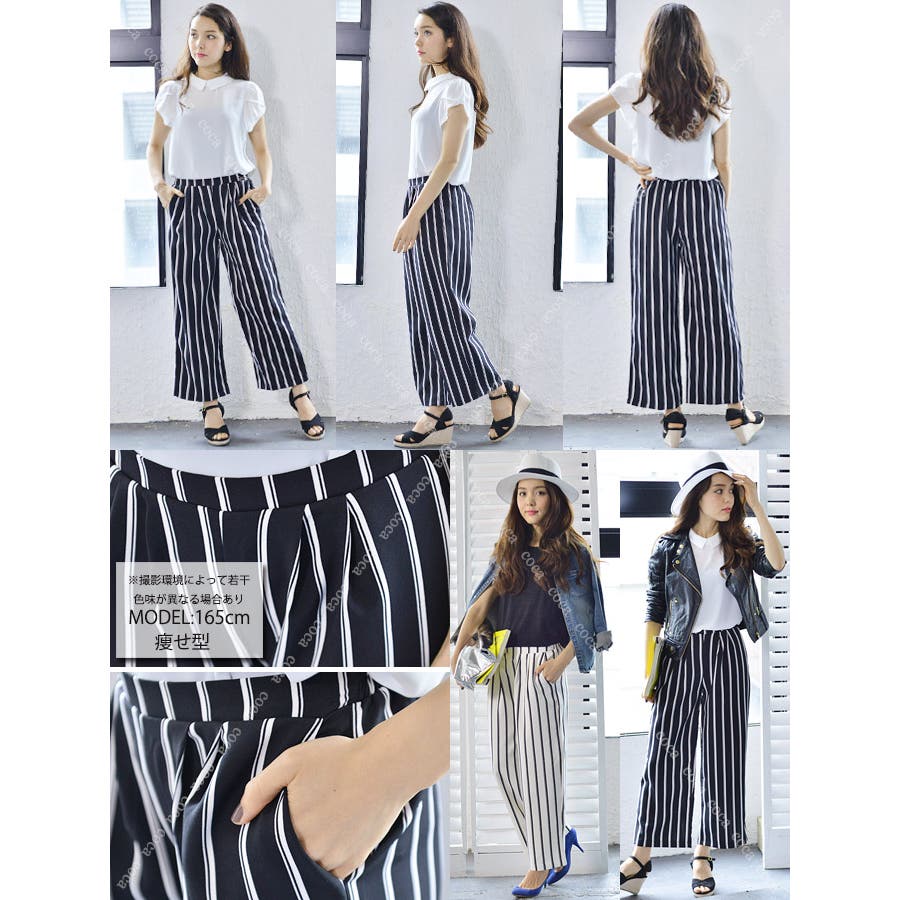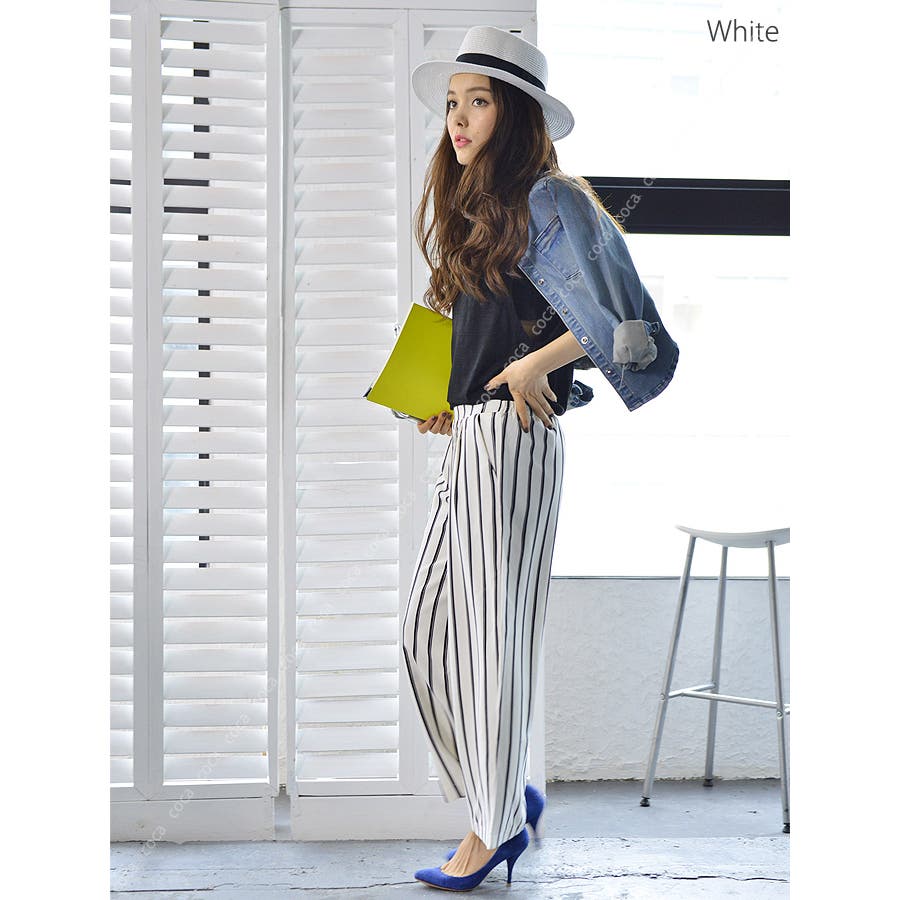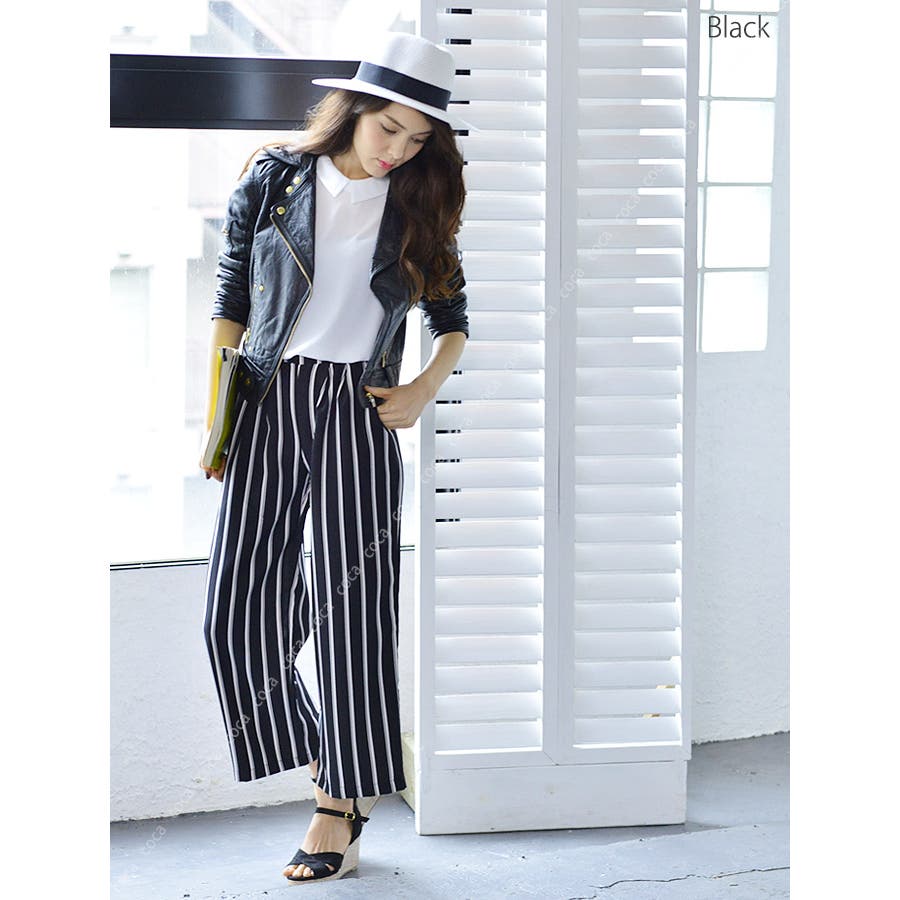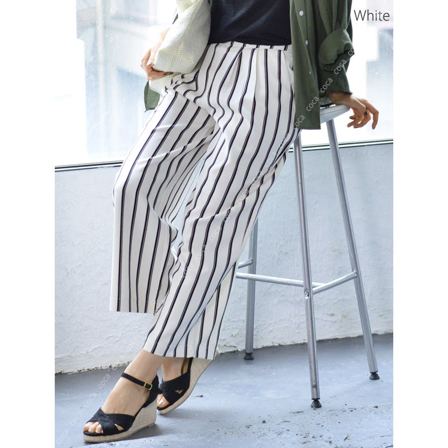 ストライプ柄ロング丈ガウチョパンツ(レディースファッション ボトムス ロングパン…