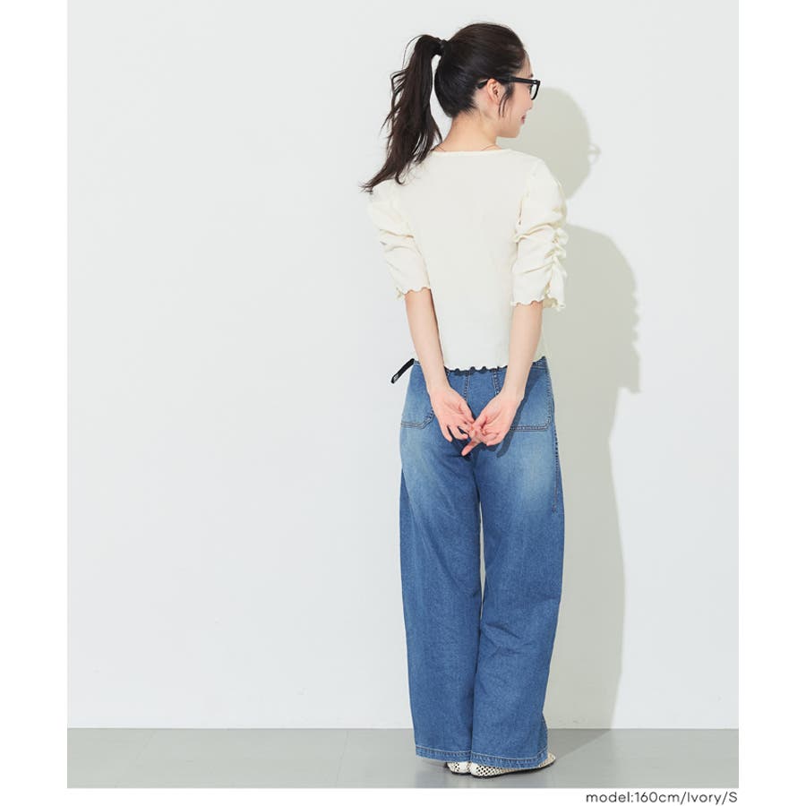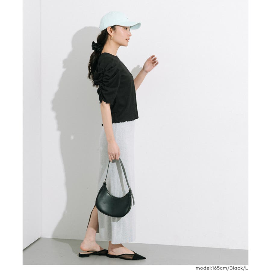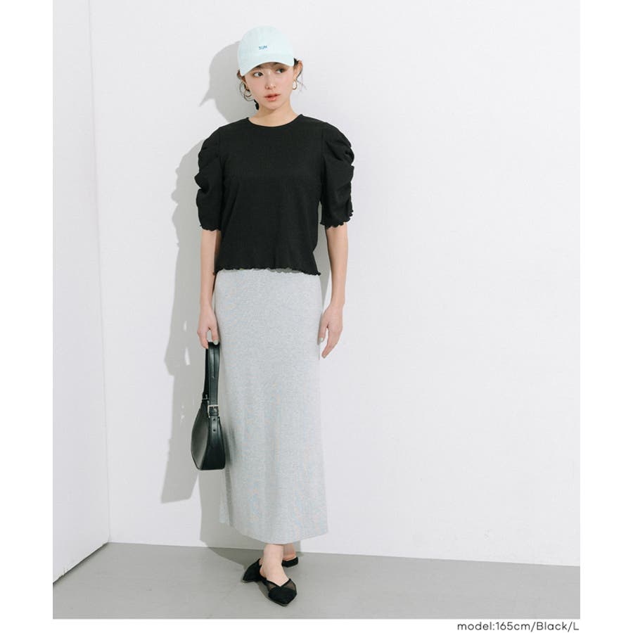 カットソー素材なので、甘めのディティールでもカジュアルに着こなせるのが魅力の1枚です。