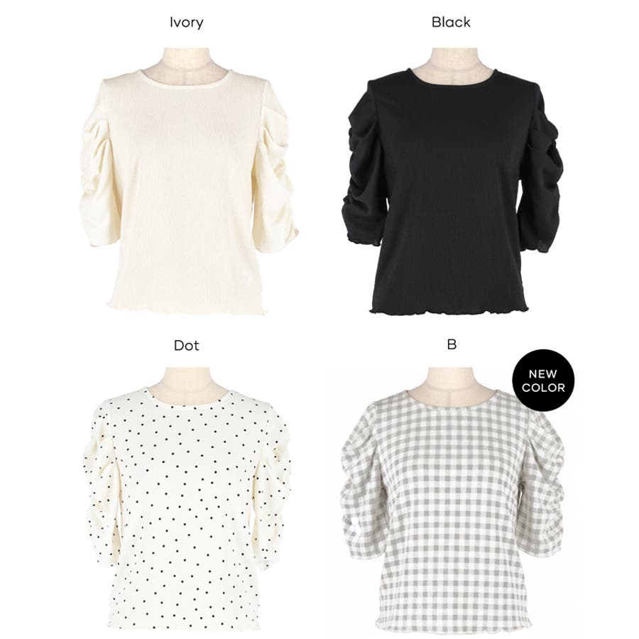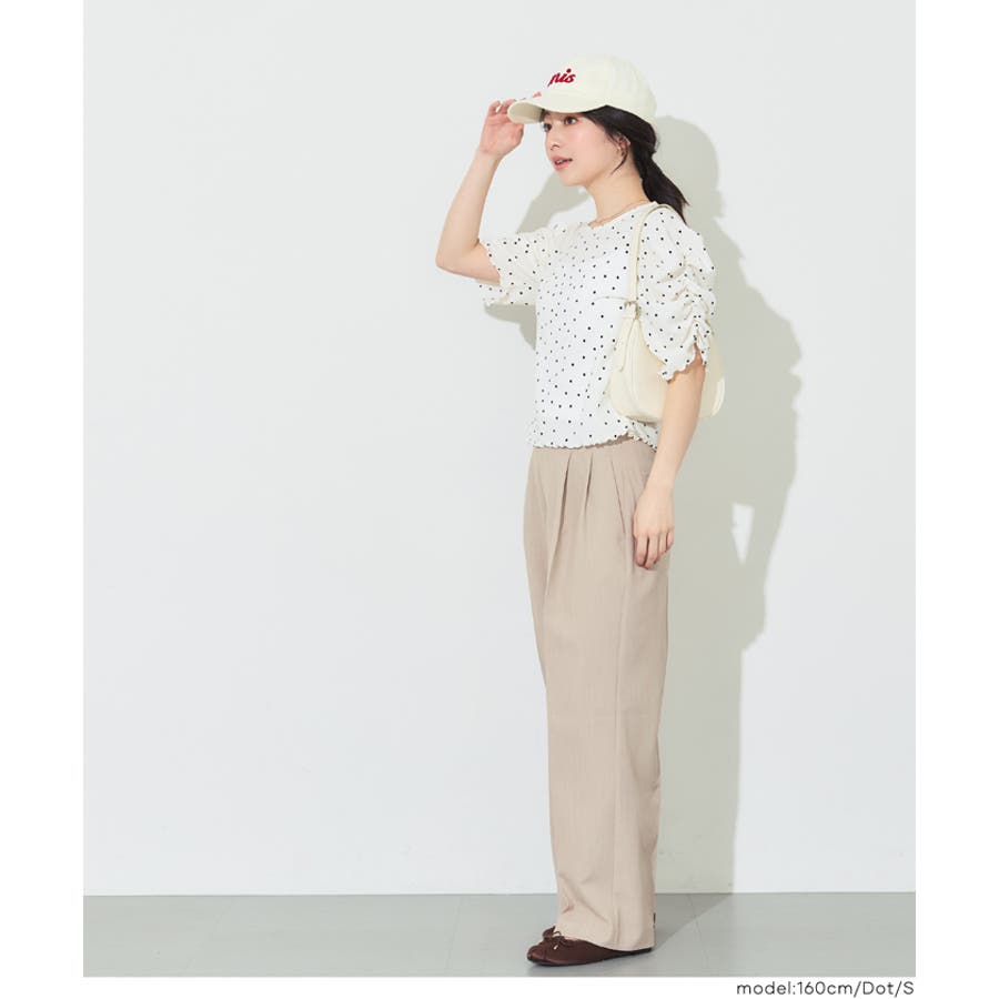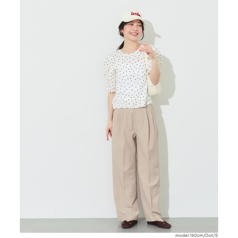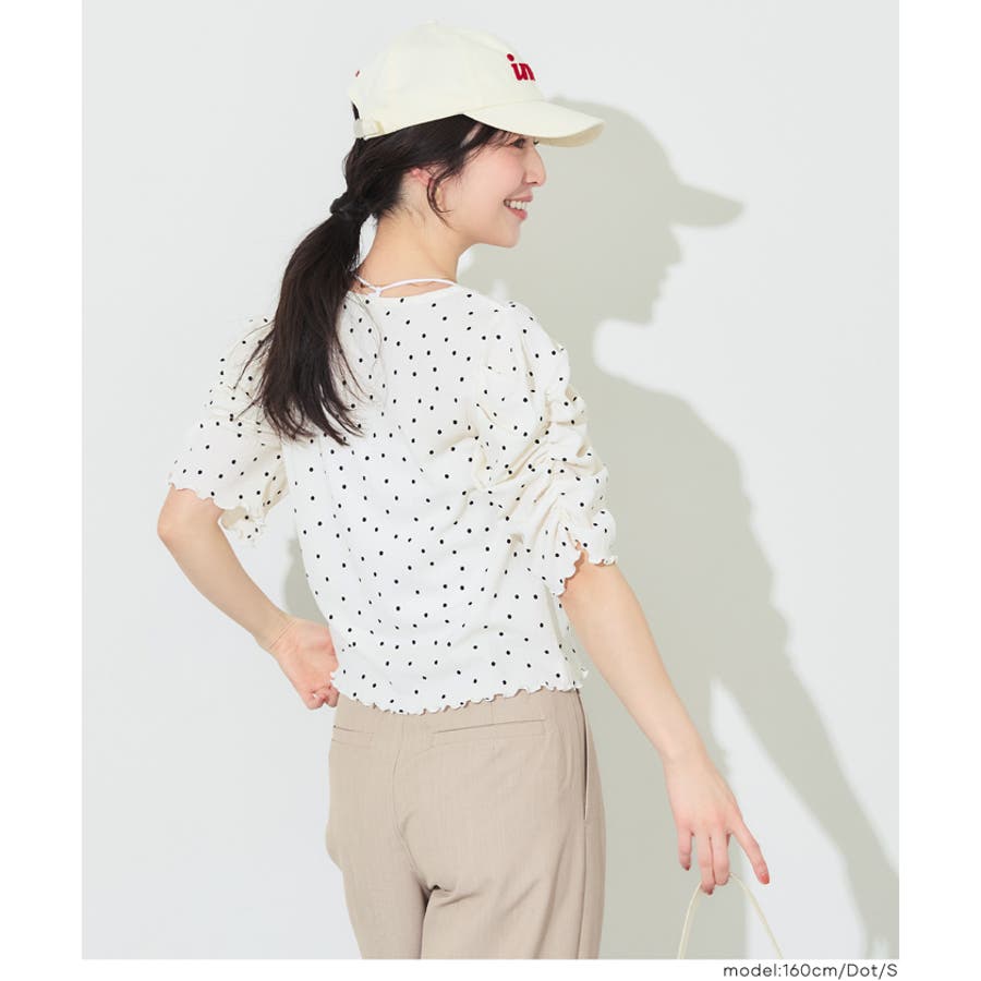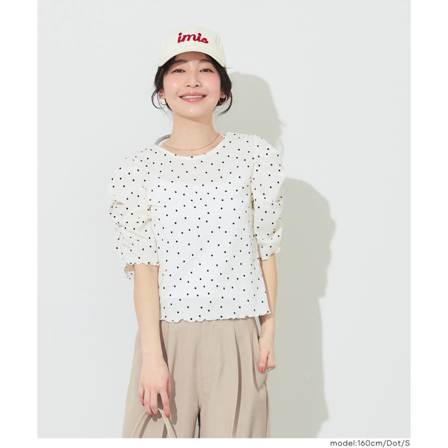 トップス カットソー シャーリング ギャザー ドット 花柄 メロー ボリューム袖 ミディアム丈 ラウンドネック カジュアル 25ss コカ COCA coca COCA coca おしゃれ 可愛い きれいめ おとな 大人 女性ファッション 韓国 春服 夏服 春 夏 カジュアル プチプラ 10代 20代 30代 40代 50代 オフィス ホーム シンプル