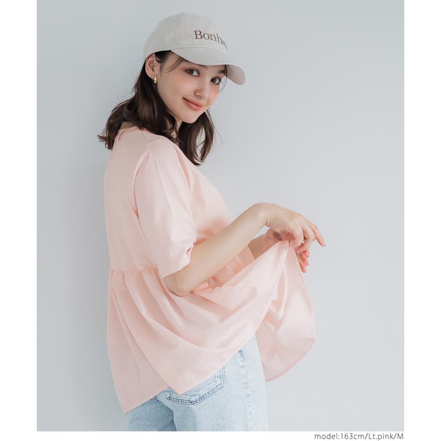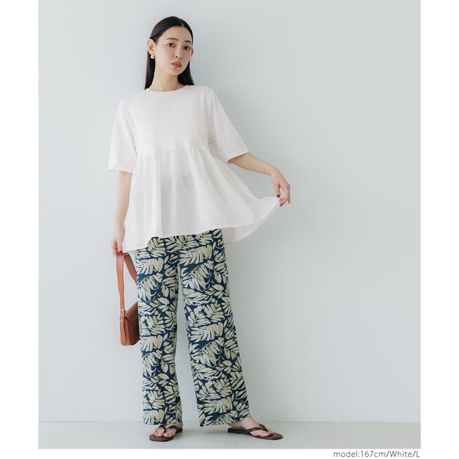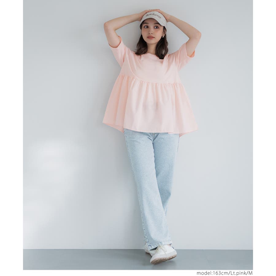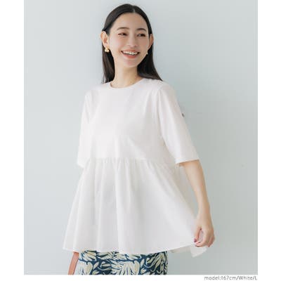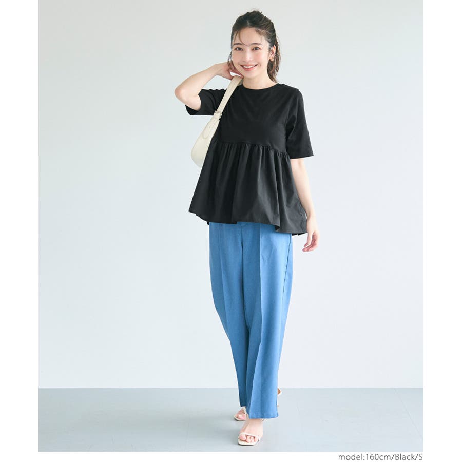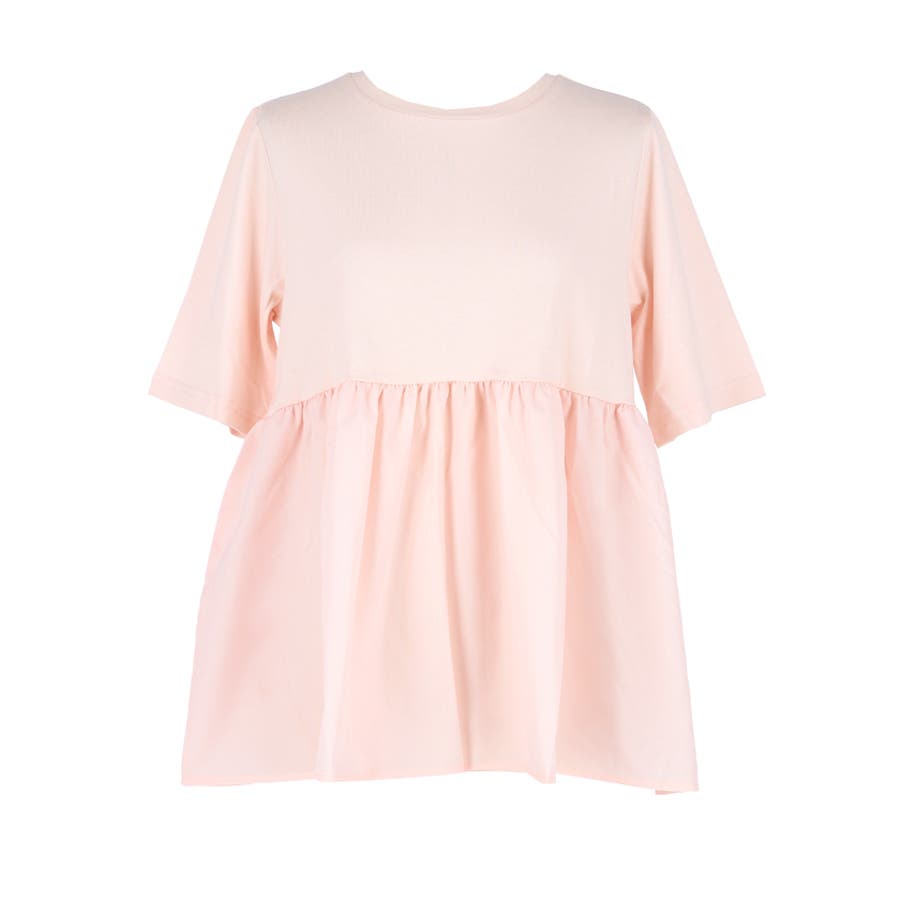 トップス カットソー Tシャツ 異素材 フレア ギャザー 5分袖 クルーネック ペプラム 切り替え ドッキング カジュアル シンプル 25ss コカ COCA coca COCA coca おしゃれ 可愛い きれいめ おとな 大人 女性ファッション 韓国 春服 夏服 春 夏 カジュアル プチプラ 10代 20代 30代 40代 50代 オフィス ホーム シンプル
