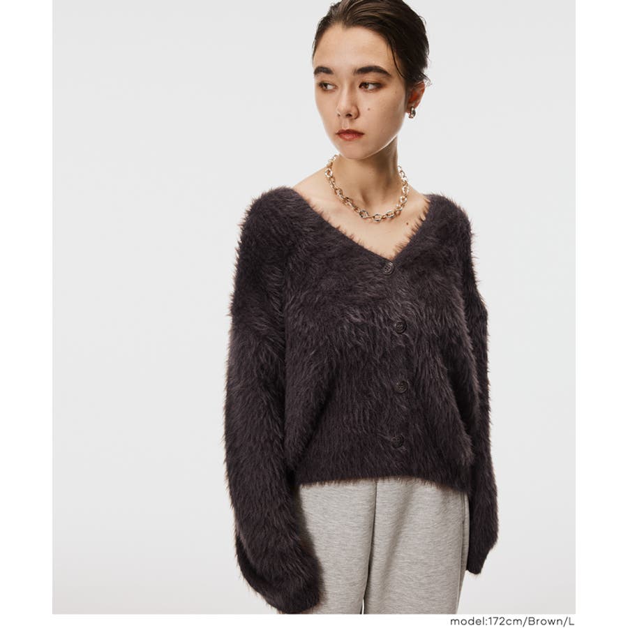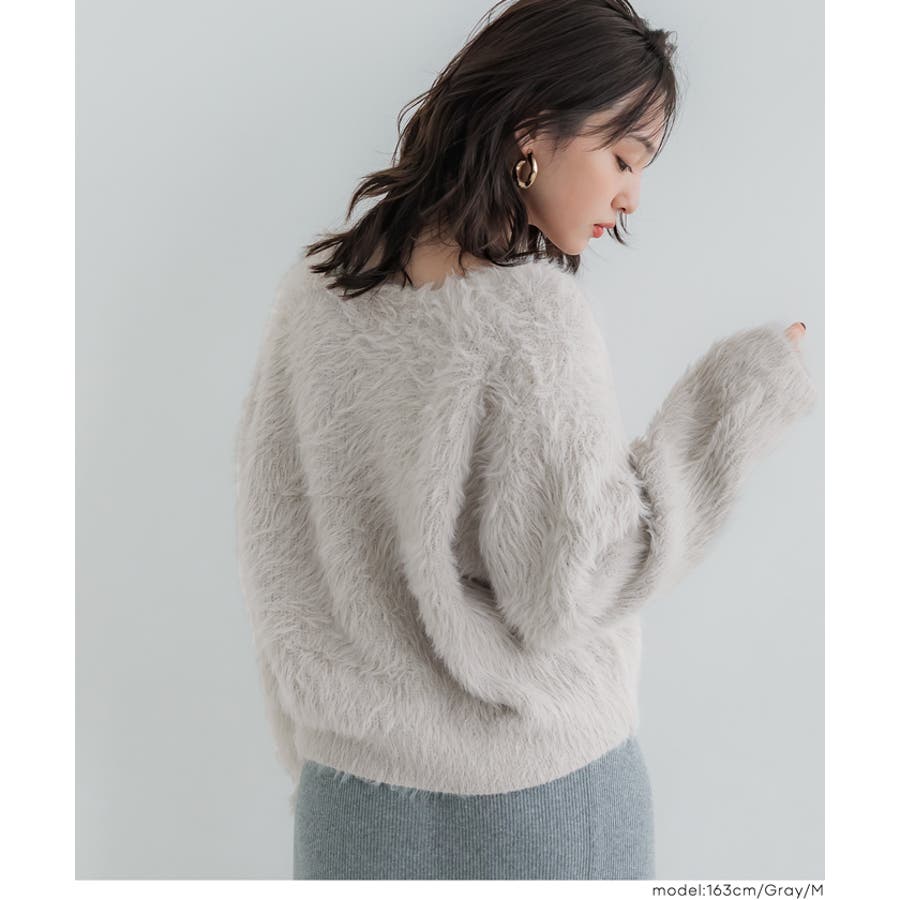 ふわっと柔らかなシャギーニット素材で、羽織りとしてもトップス使いとしても活躍。