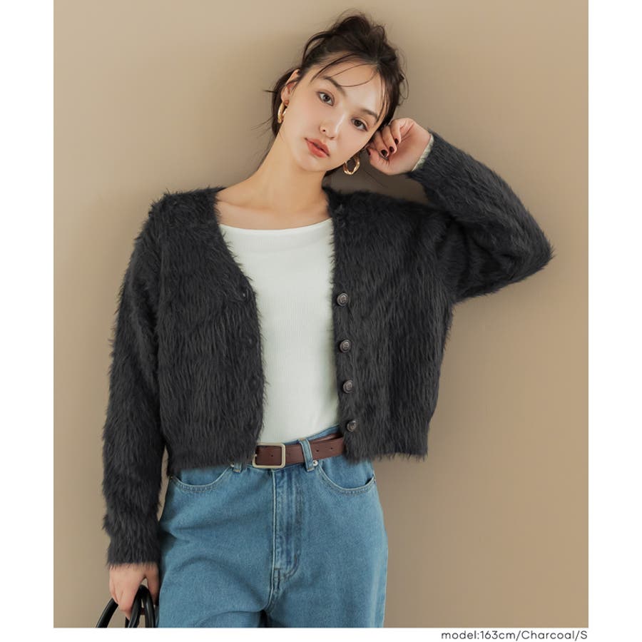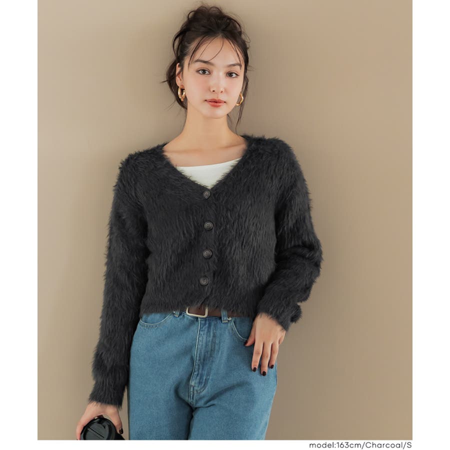 アウター カーディガン ニット シャギー 前開き 羽織り 重ね着 フロントボタン Vネック 長袖 ショート丈 無地 伸縮性 カジュアル コカ 25aw COCA coca COCA coca おしゃれ 可愛い きれいめ 秋 秋服 冬 冬服 おとな 大人 女性ファッション 韓国 カジュアル プチプラ 10代 20代 30代 40代 50代 オフィス ホーム シンプル