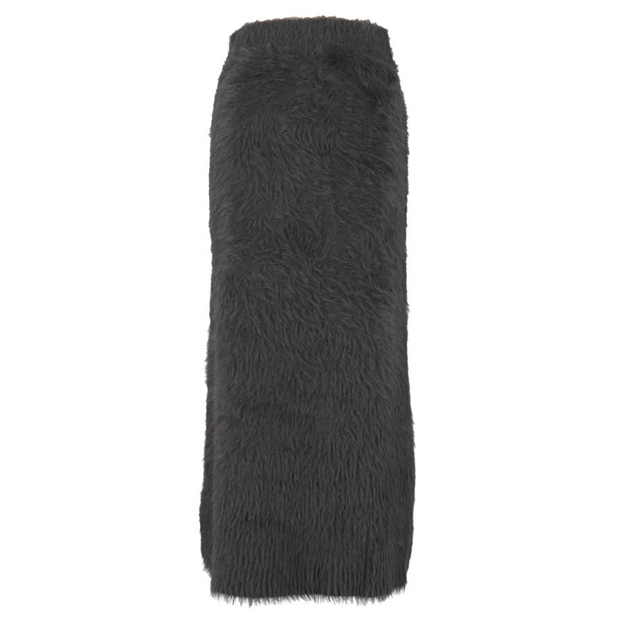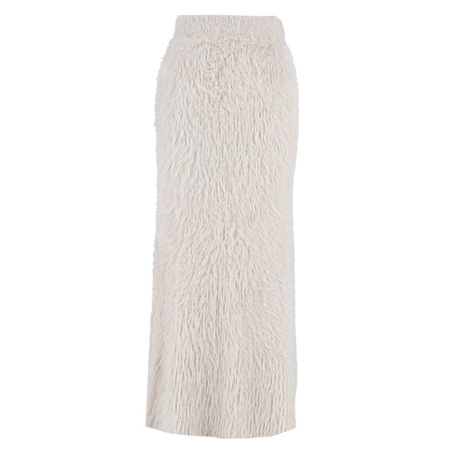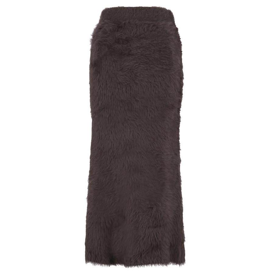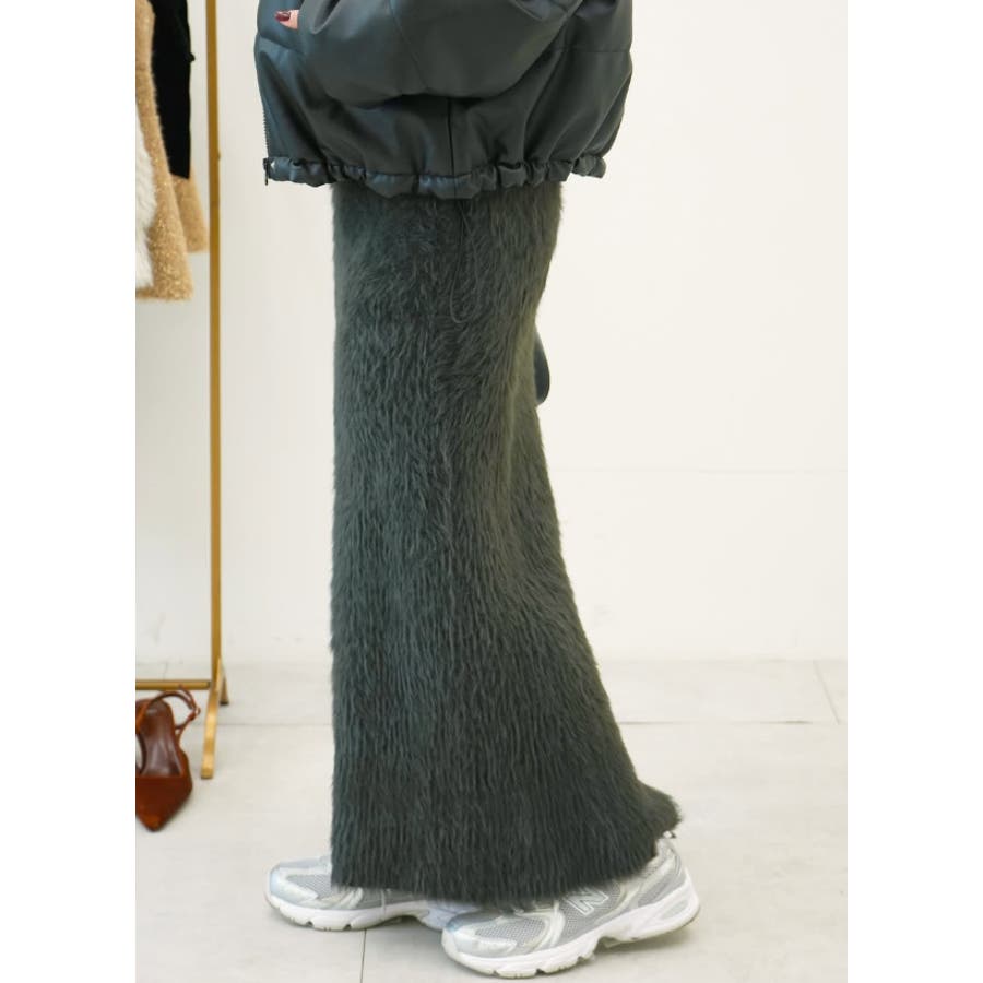 暖かみのあるシャギーニット素材で仕立てたロングIラインスカート。
