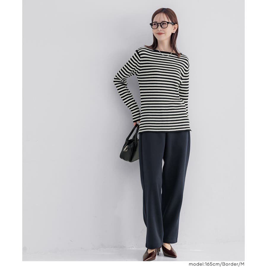 ボートネックで首元もすっきりとした印象に見せてくれます。