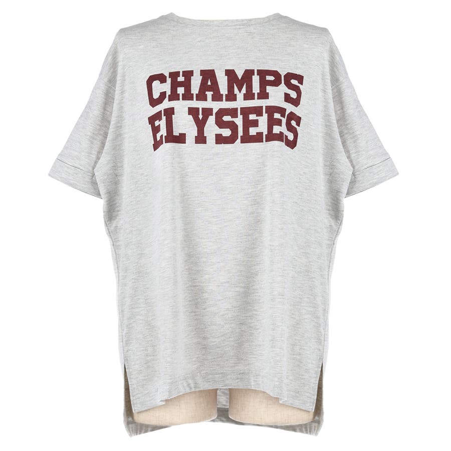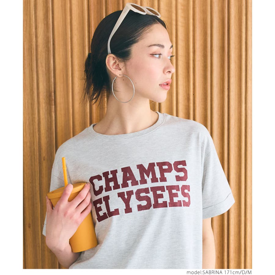 カットソー レディース Tシャツ ロールアップスリーブ プリント 英字 クルーネック サイドスリット ゆったり 半袖 トップス プルオーバー 半袖カットソー ロールアップ フロントロゴ ラウンドネック スリット 前後差 ビッグシルエット 伸縮性 コカ COCA coca COCA coca