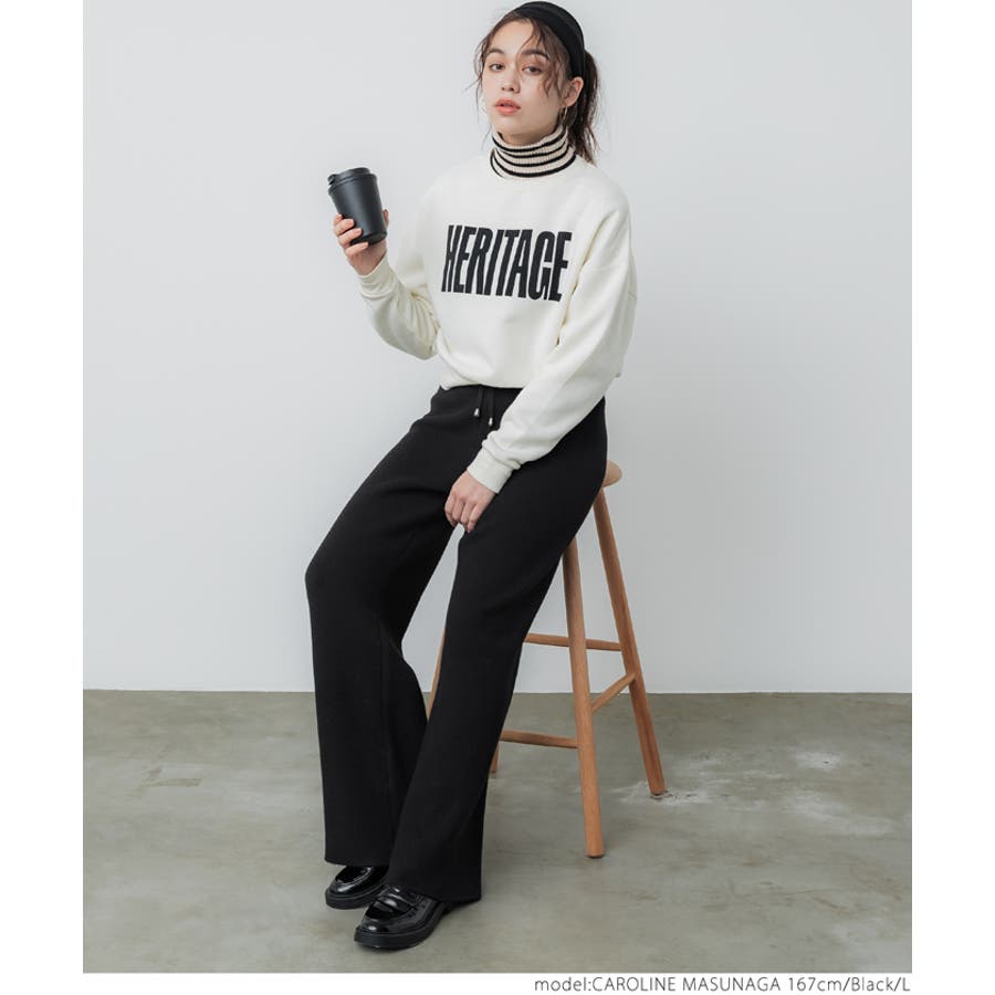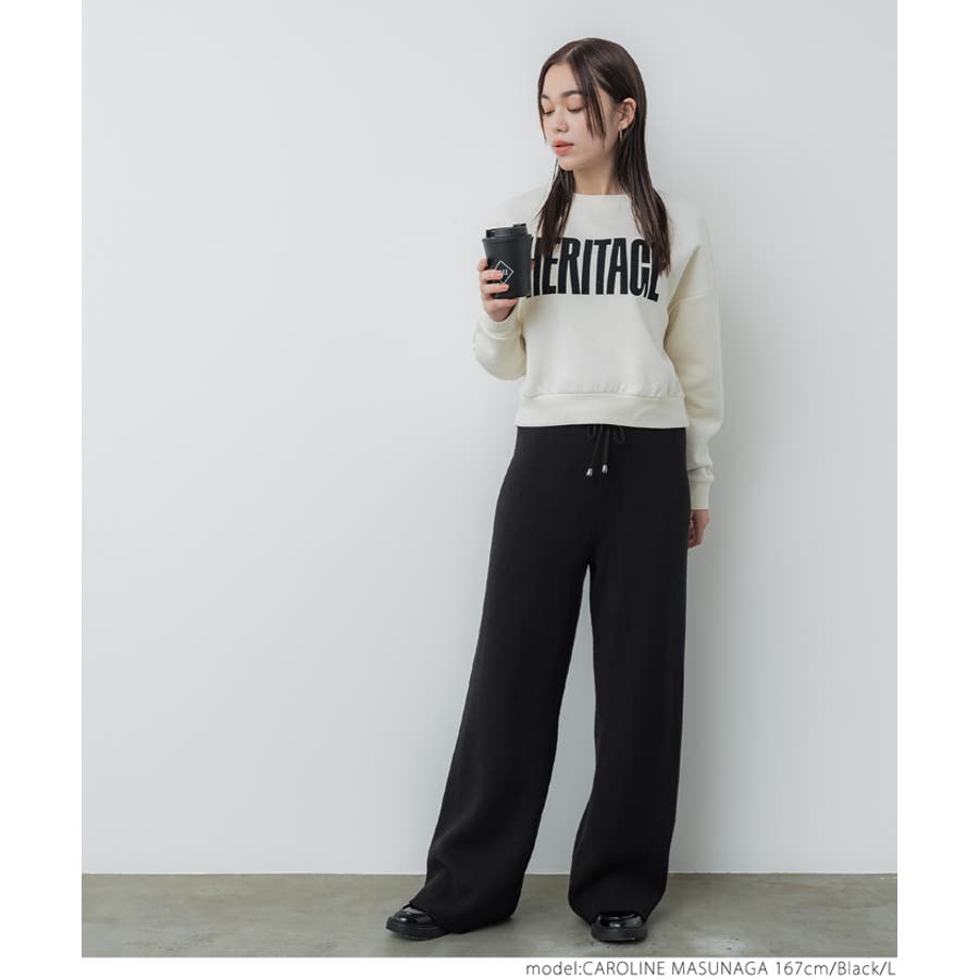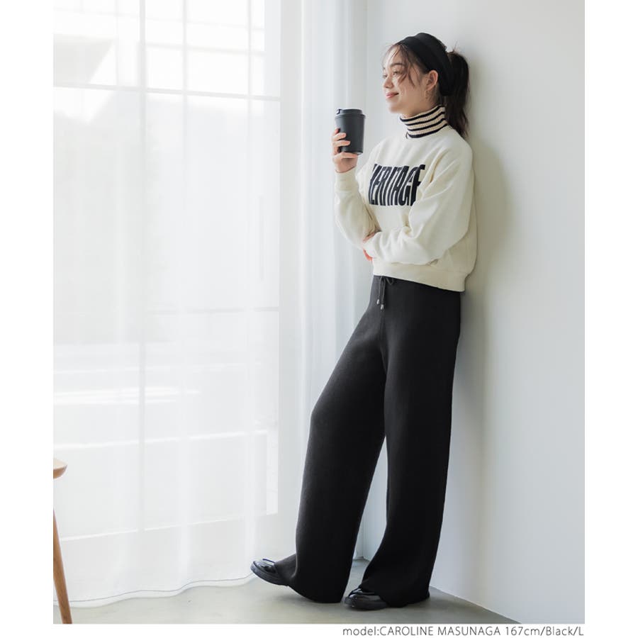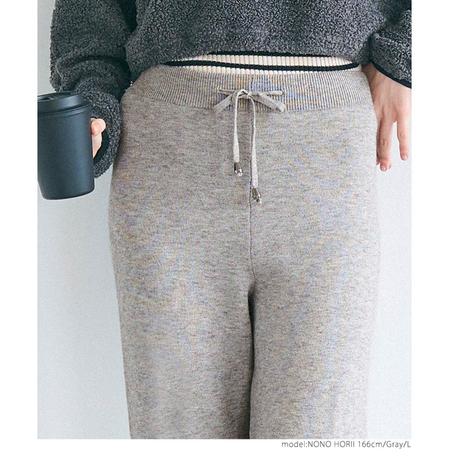 ボトムス WARMSTYLE ニットパンツ 裏シャギー 保温 ストレート イージーパンツ ウエストリボン ロング丈 無地 伸縮性 24aw コカ COCA coca COCA coca