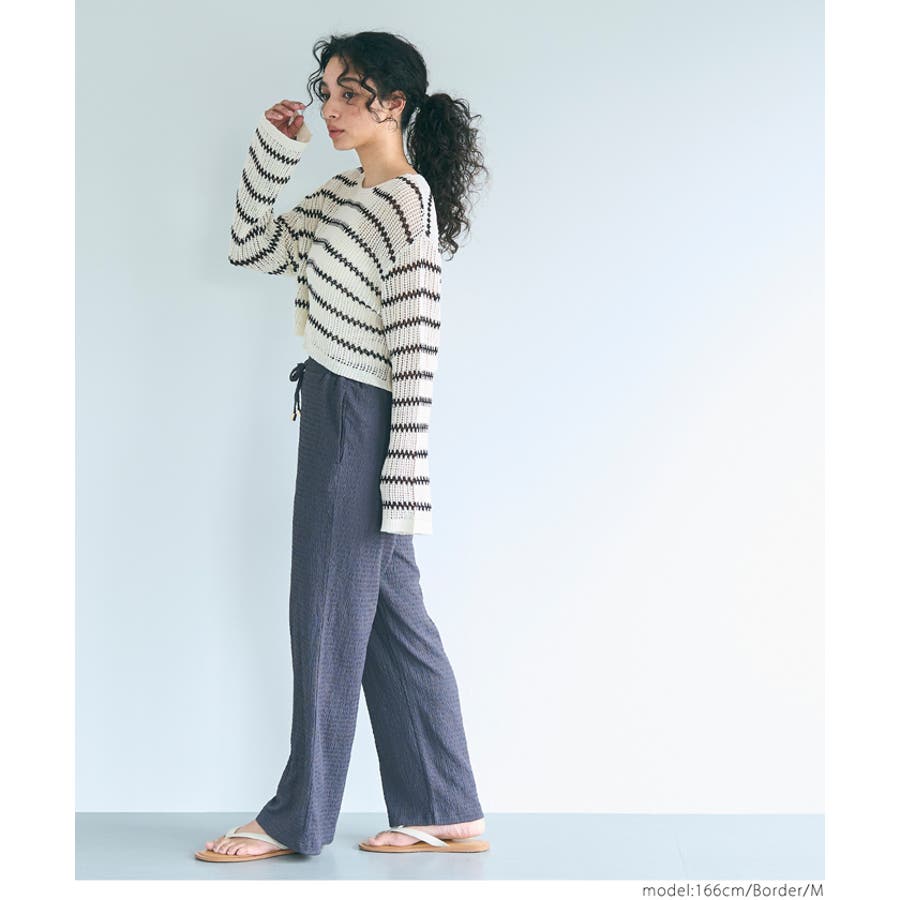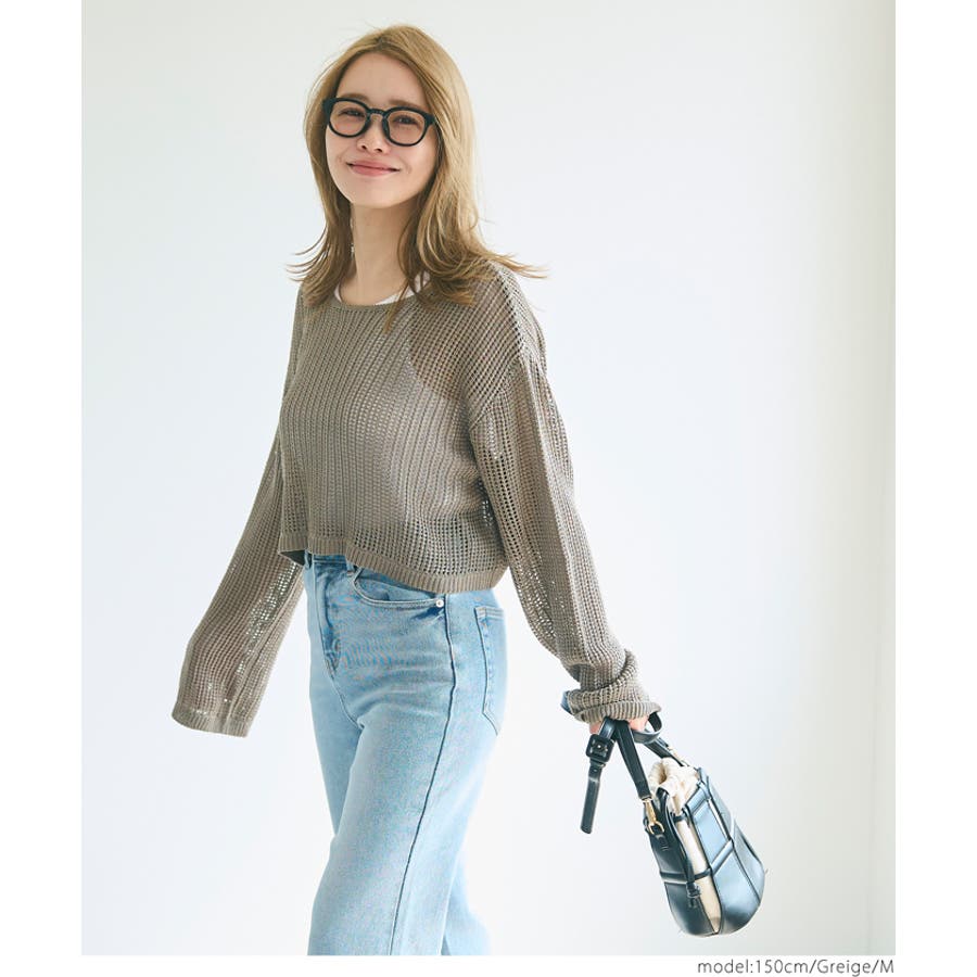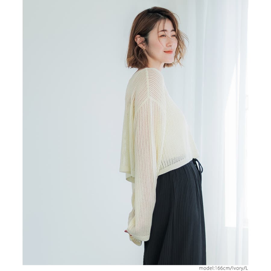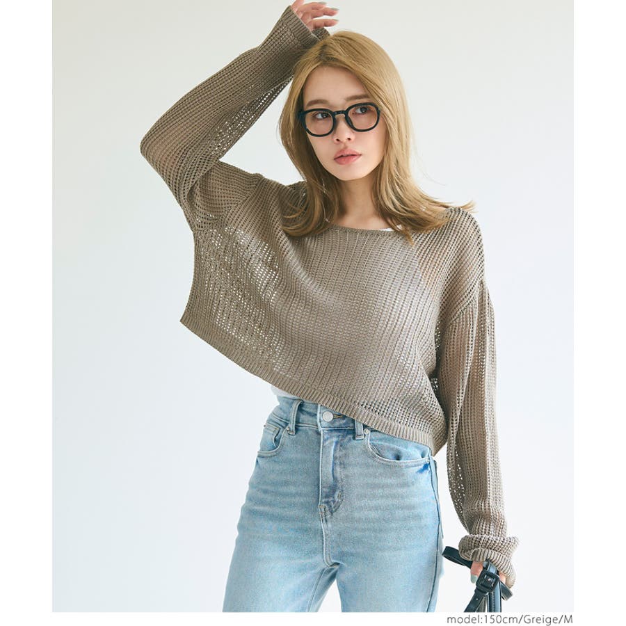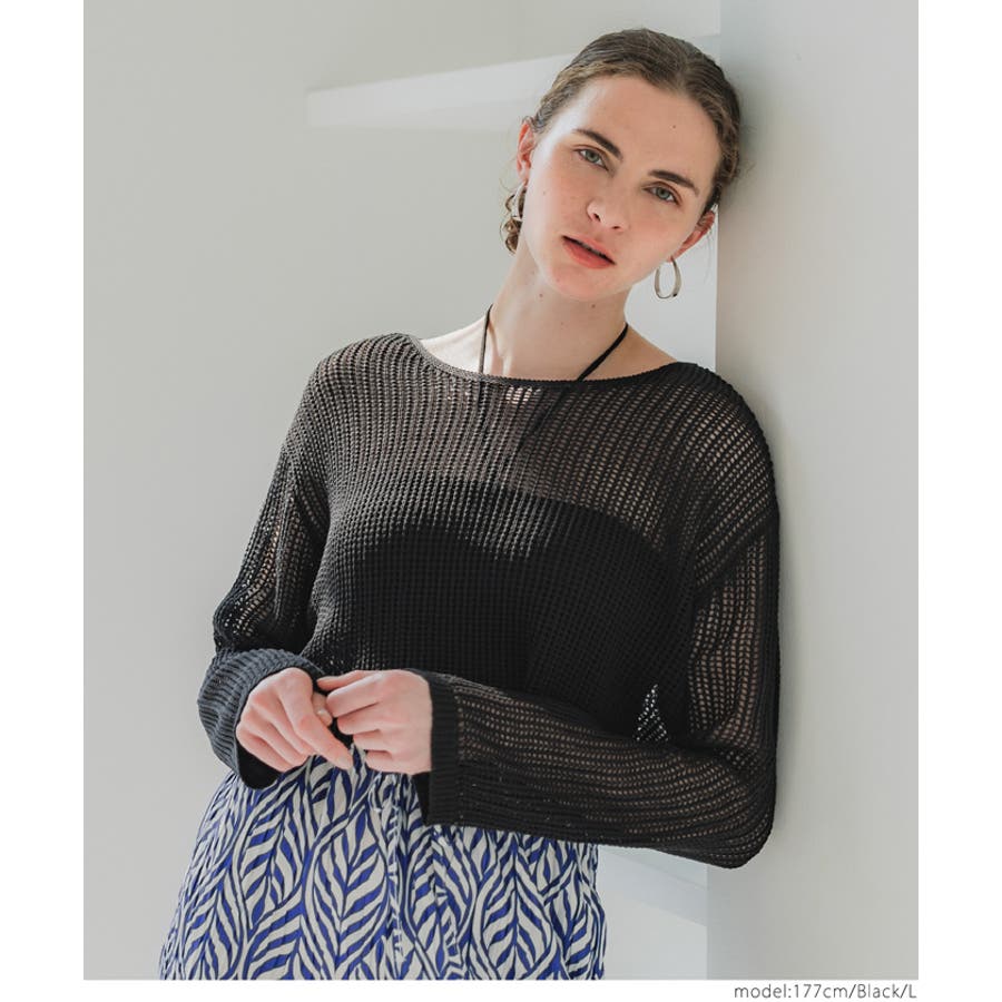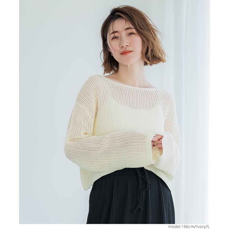 軽やかな透かし編みが涼しげで、春夏にぴったりのニットトップス