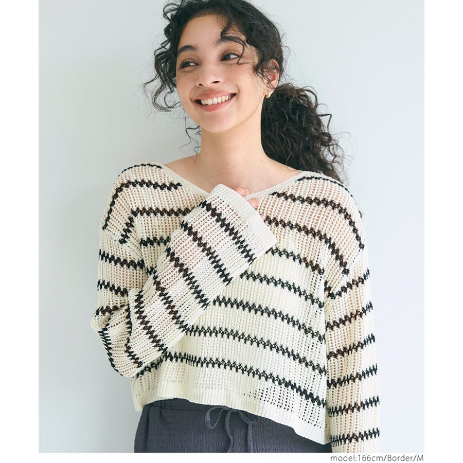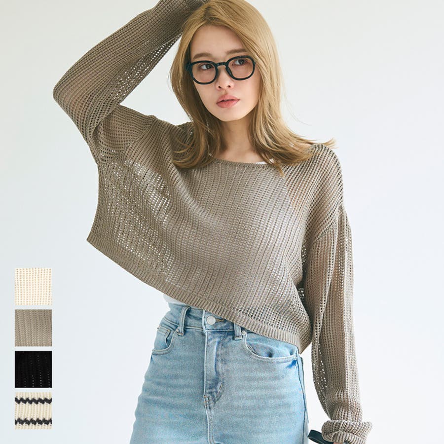 トップス ニット メッシュ 長袖 ミディアム 透け感 ボーダー 柔らかい アクリル シンプル カジュアル 25ss コカ COCA coca COCA coca おしゃれ 可愛い きれいめ おとな 大人 女性ファッション 韓国 春服 夏服 春 夏 カジュアル プチプラ 10代 20代 30代 40代 50代 オフィス ホーム シンプル