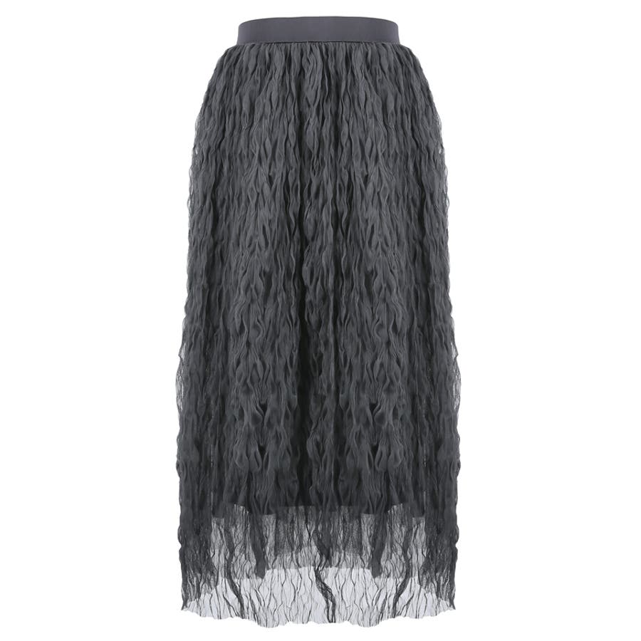 投稿日:2025.06.16表からシワ加工のチュール、ツルツル地、裏地となっていて、履くとボリュームがあり、予想以上に暑く感じます。