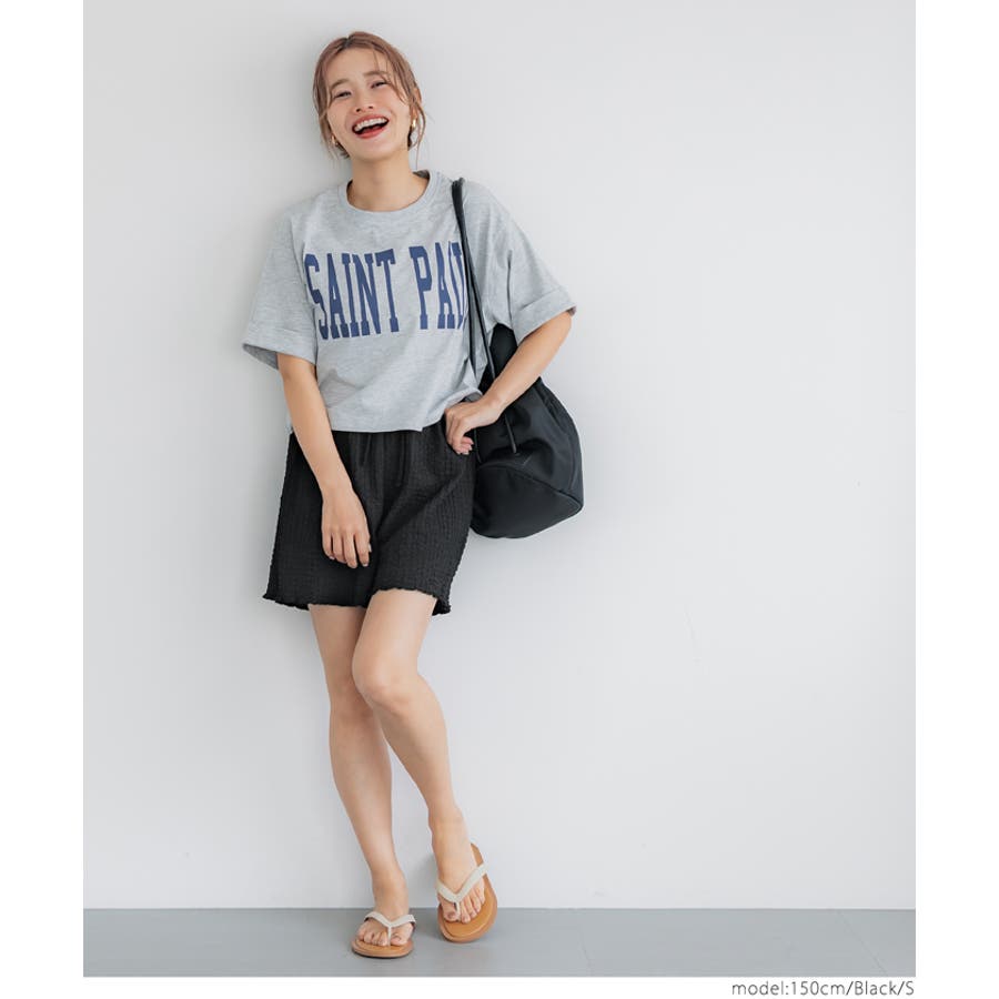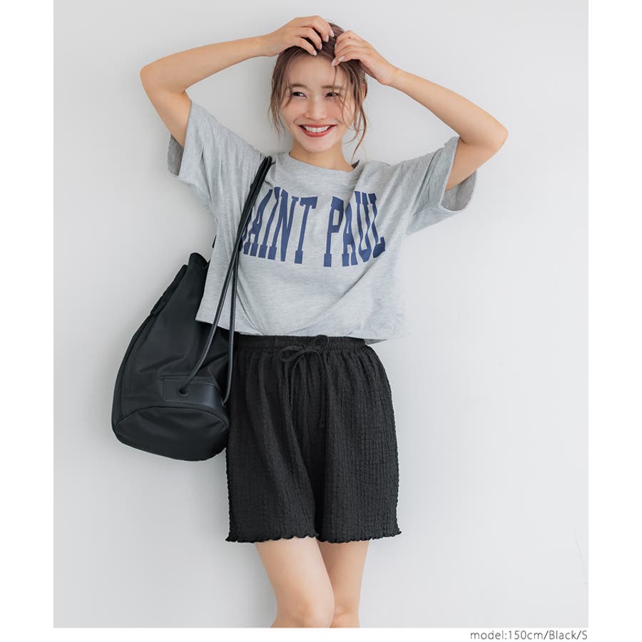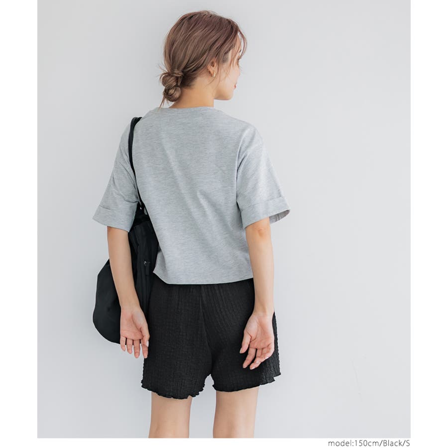 シボ感×シャーリングでこなれ感UP。大人カジュアルに映えるクロスシャーリングショートパンツ