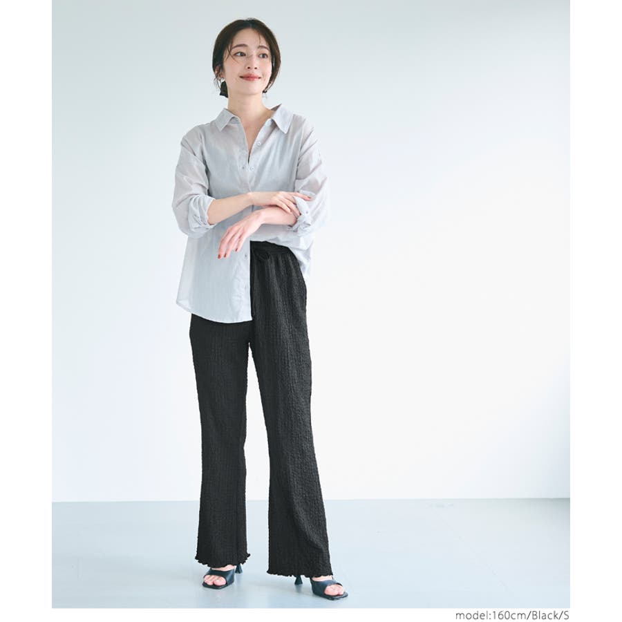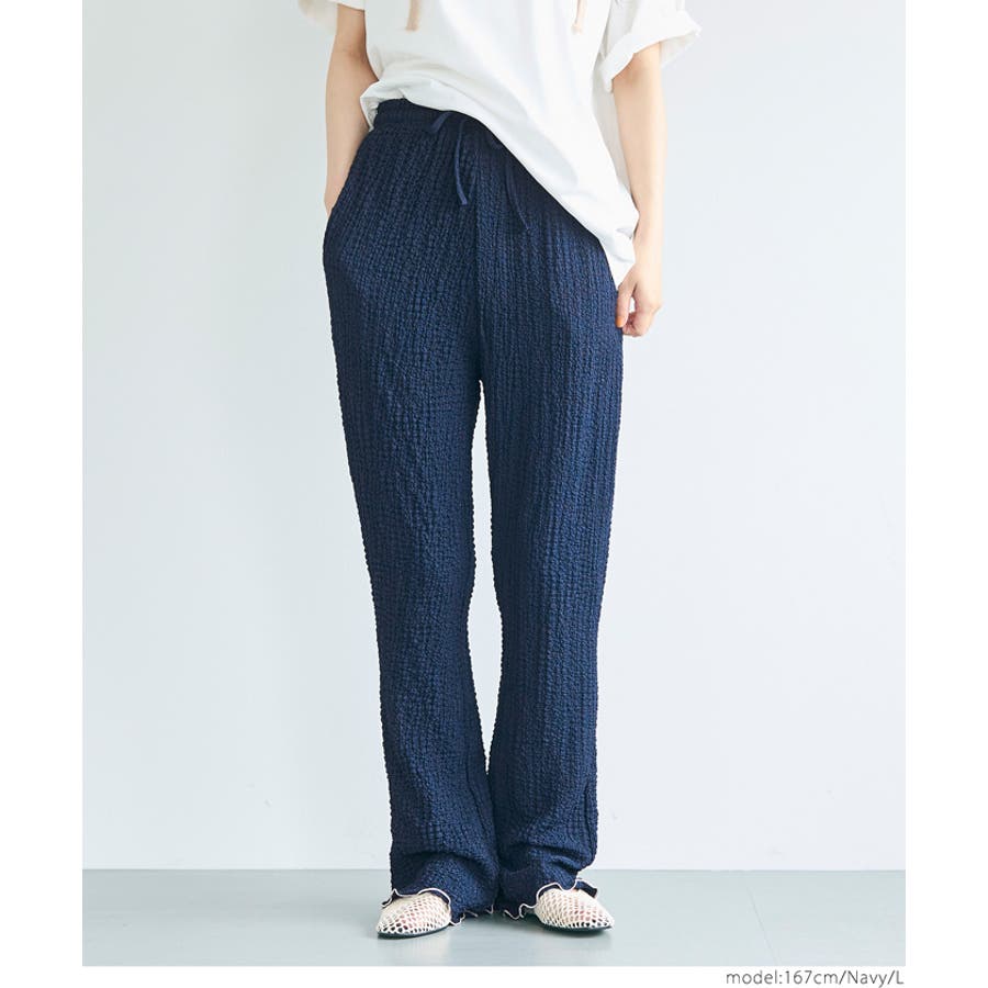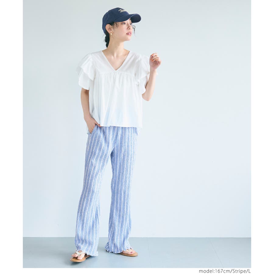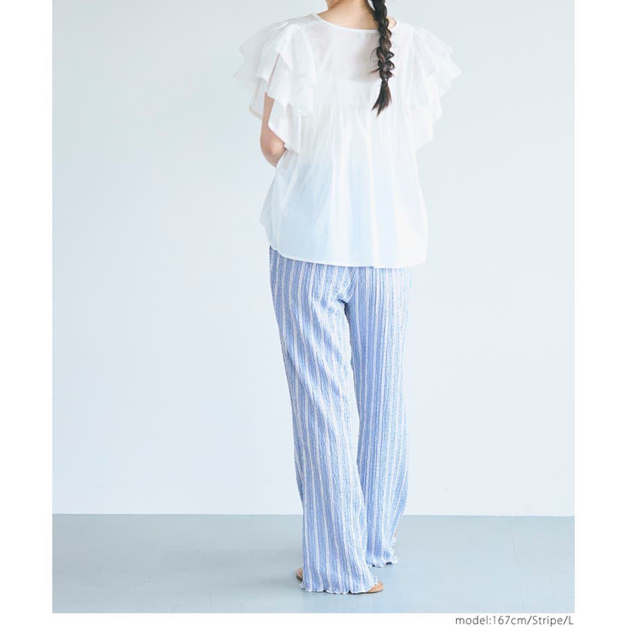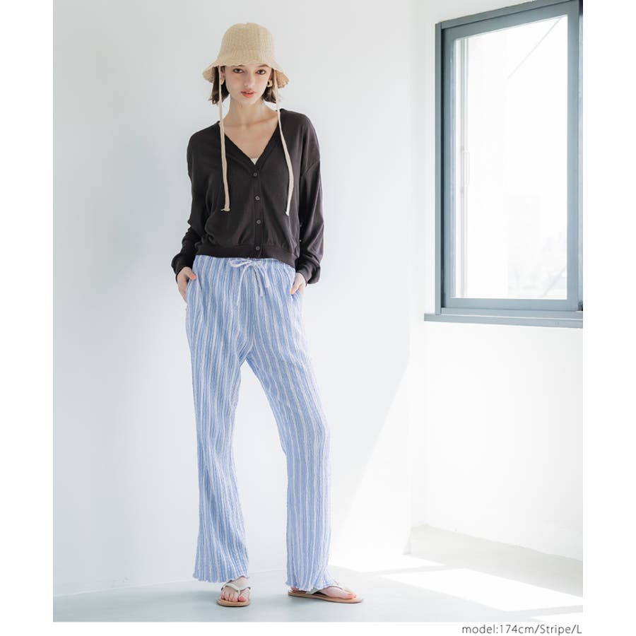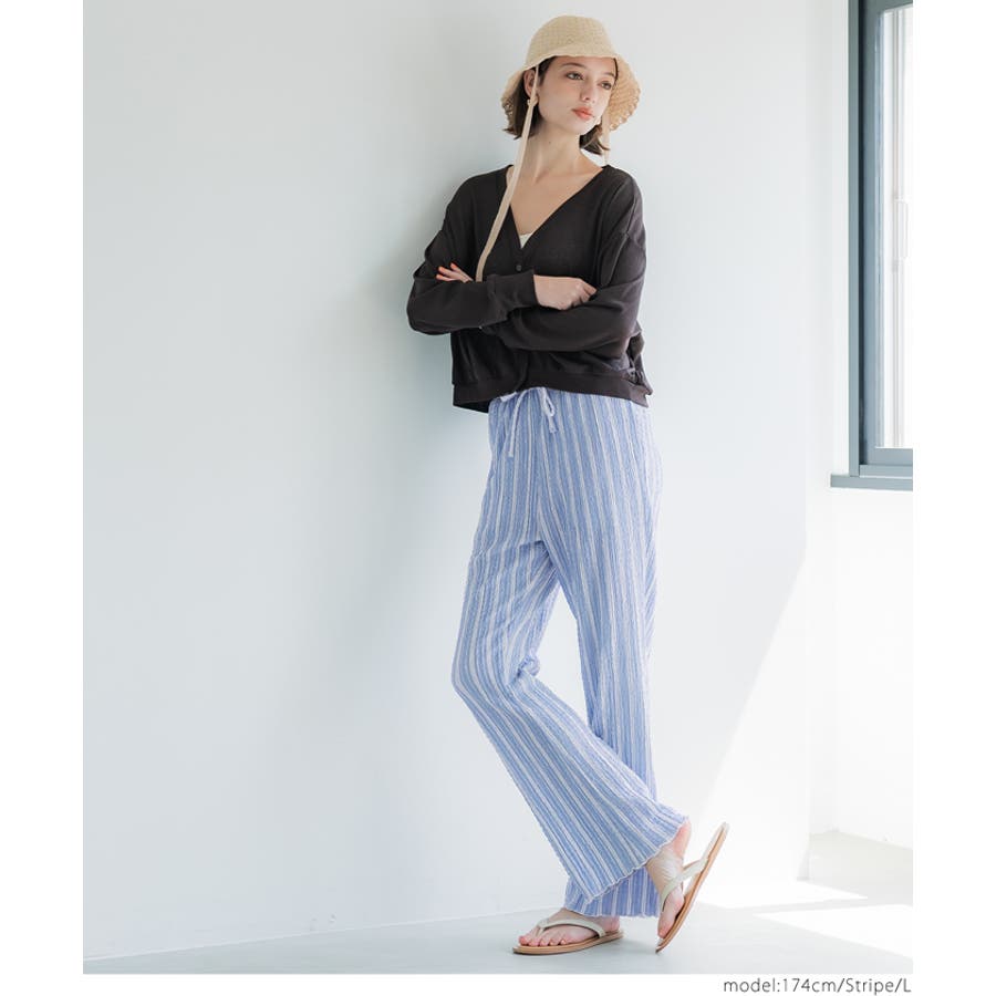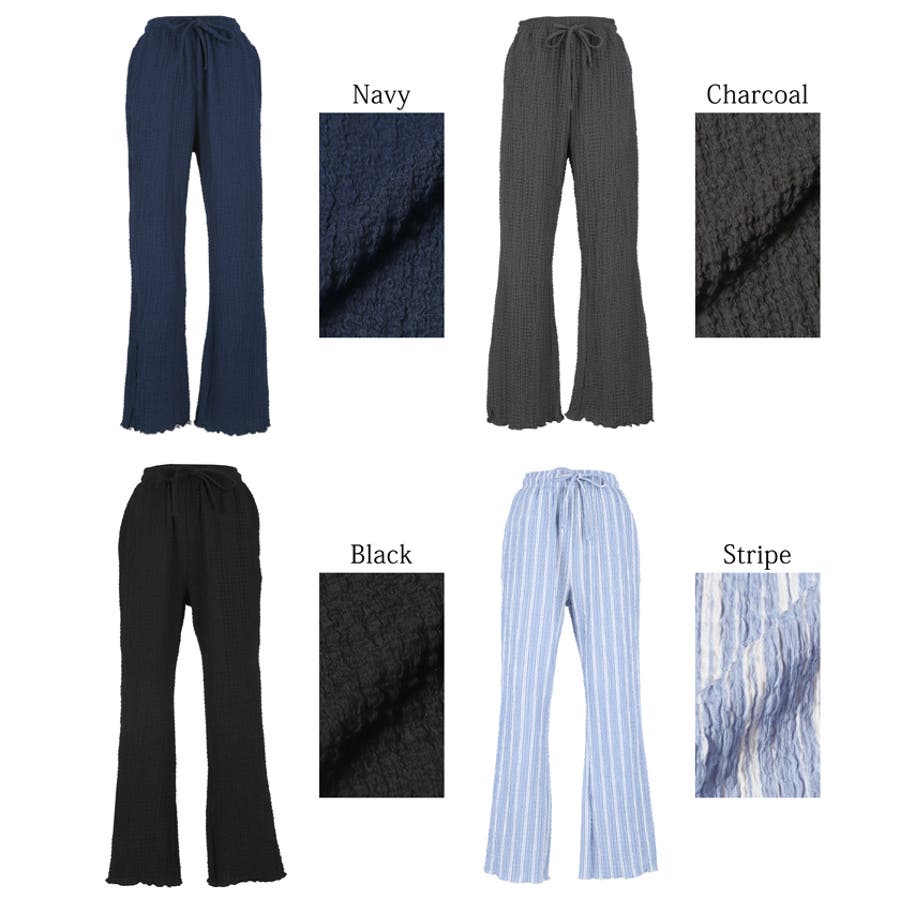 ボトムス パンツ セミフレアパンツ ロング ウエストゴム ウエスト紐 シボ感 シャーリング 吸水速乾 ストライプ カジュアル 25ss コカ COCA coca COCA coca おしゃれ 可愛い きれいめ おとな 大人 女性ファッション 韓国 春服 夏服 春 夏 カジュアル プチプラ 10代 20代 30代 40代 50代 ホーム シンプル