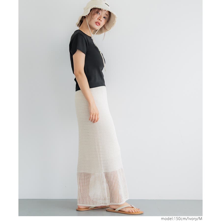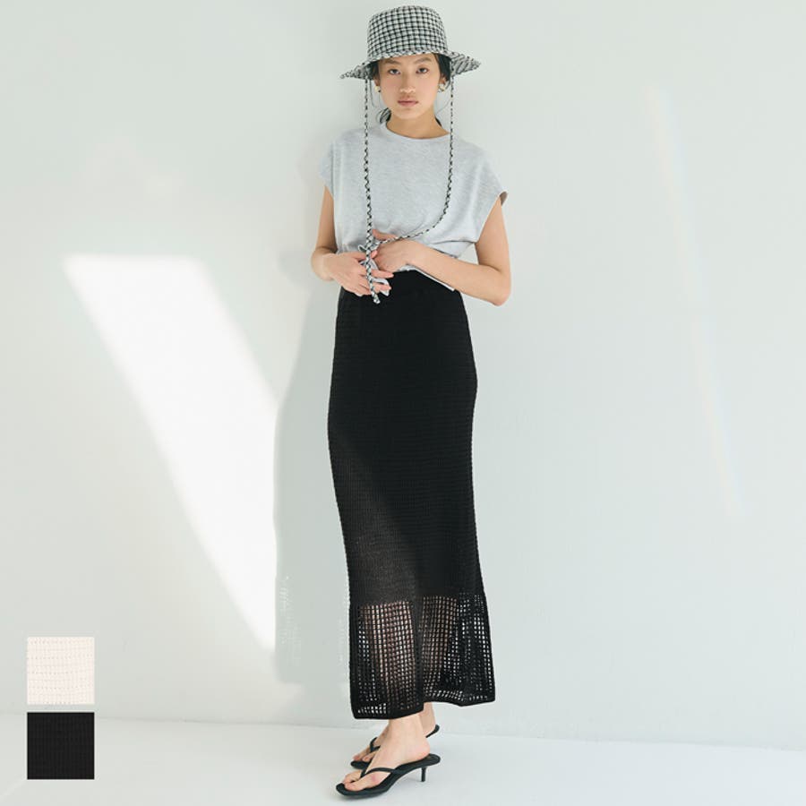 ボトムス スカート カギ編み ウエストゴム 伸縮性 ニット シースルー タイトスカート アイラインスカート 25ss コカ COCA coca COCA coca おしゃれ 可愛い きれいめ おとな 大人 女性ファッション 韓国 春服 夏服 春 夏 カジュアル プチプラ 10代 20代 30代 40代 50代 ホーム シンプル