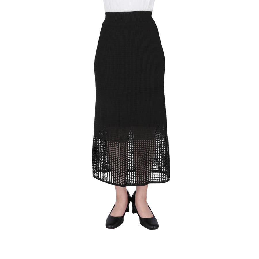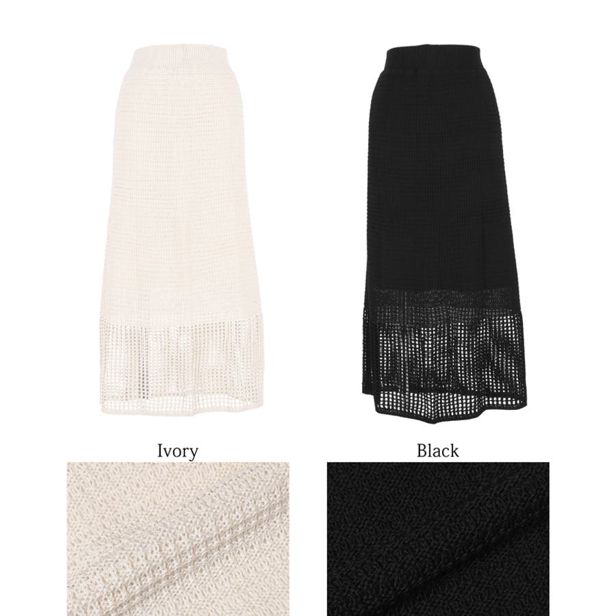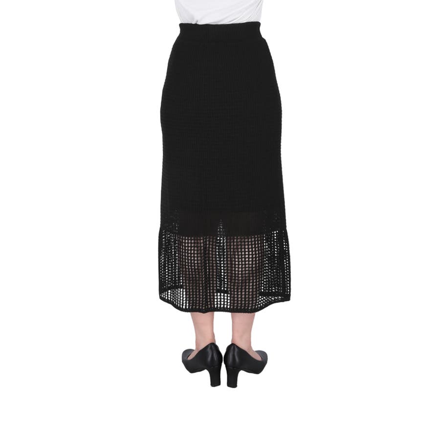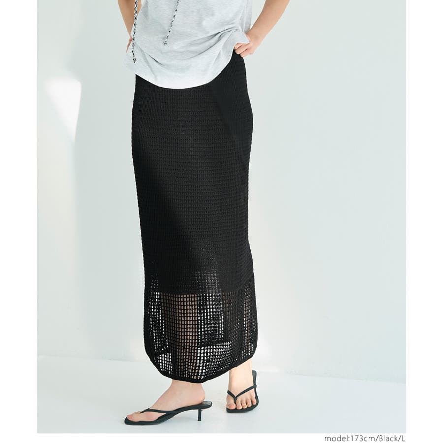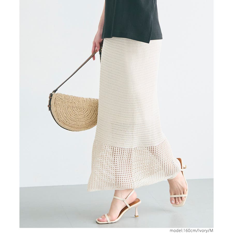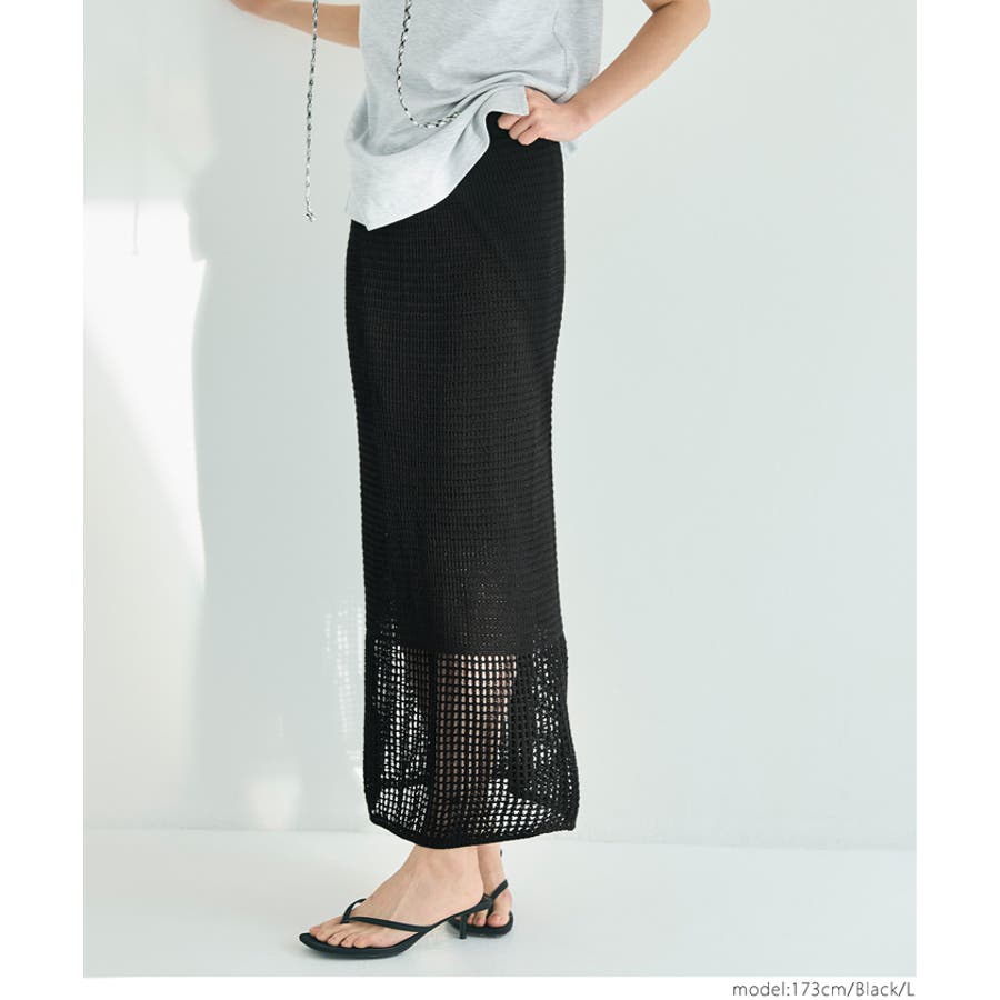 透け感のあるメッシュ編み模様が夏らしさを引き立てるニットスカート