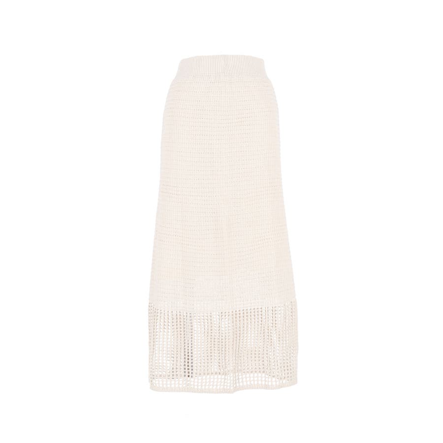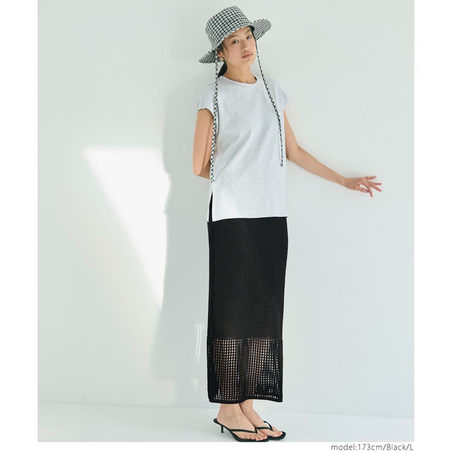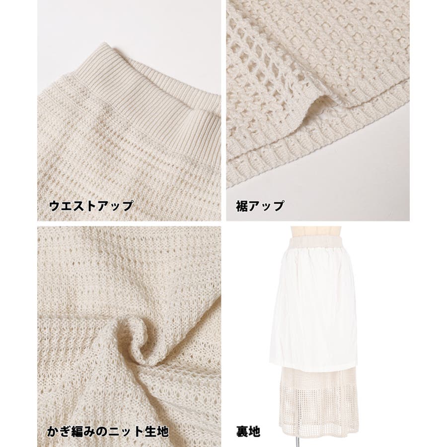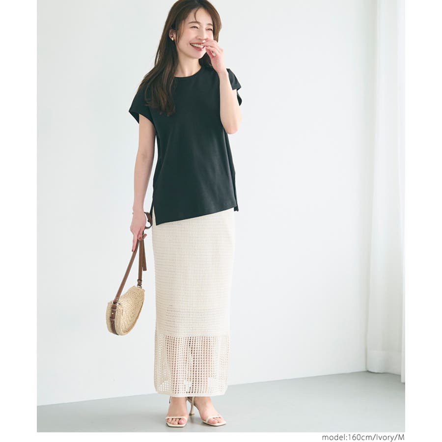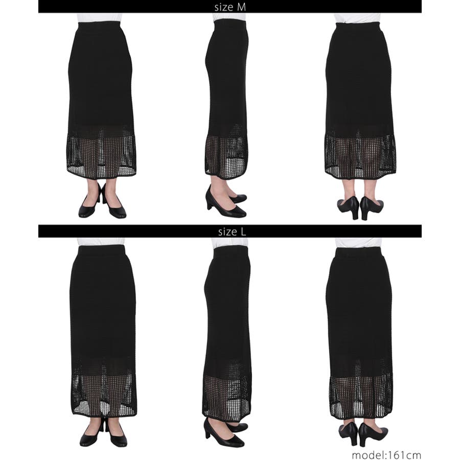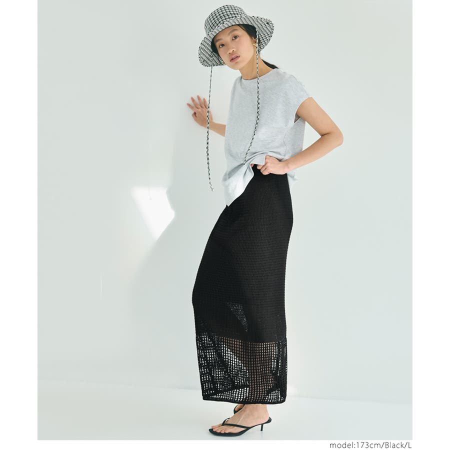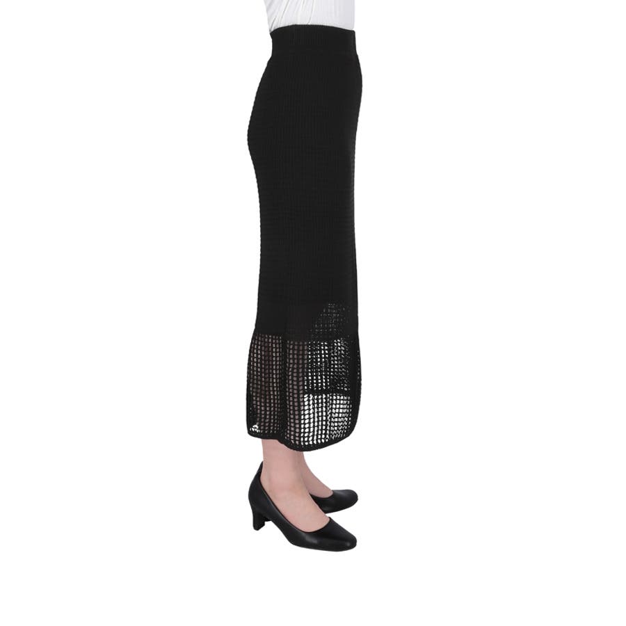 透け感のあるメッシュ編み模様が夏らしさを引き立てるニットスカート