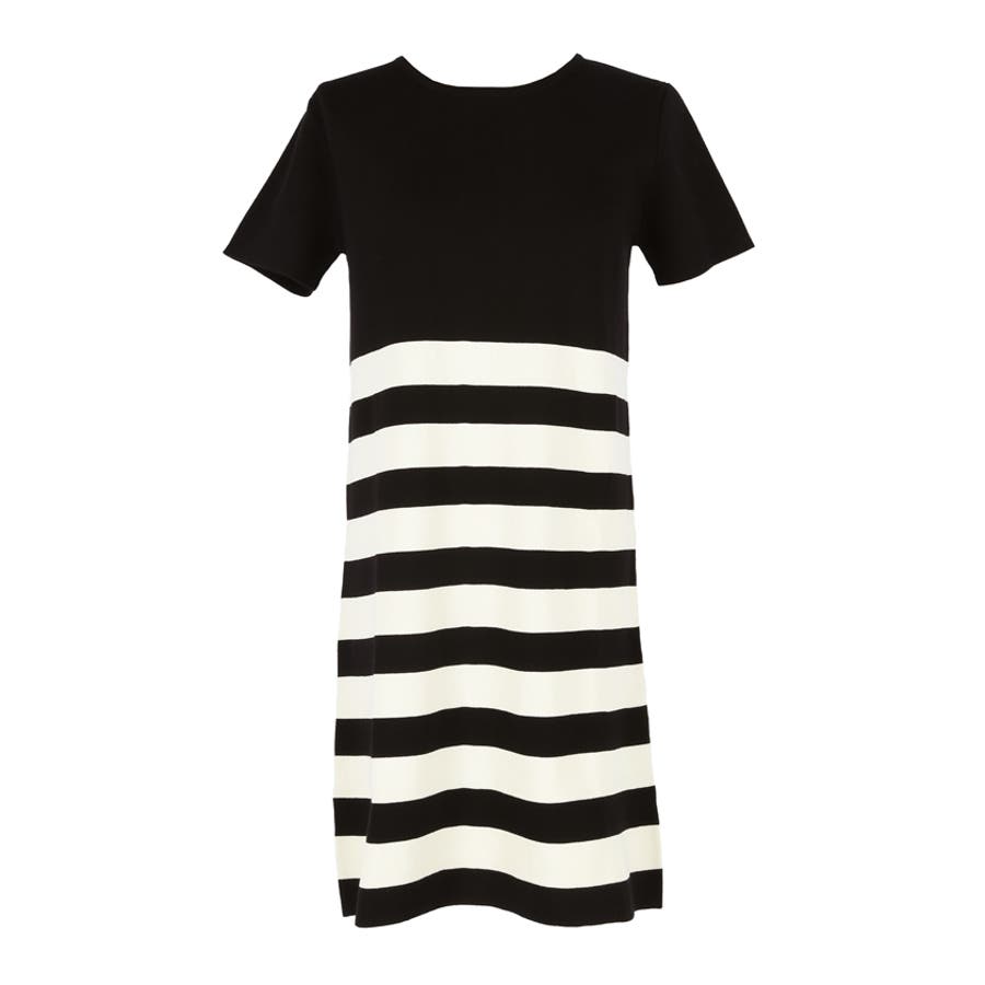 身頃はシックなブラック、裾にはボーダー柄をあしらった切り替えデザインが目を惹く1着と、