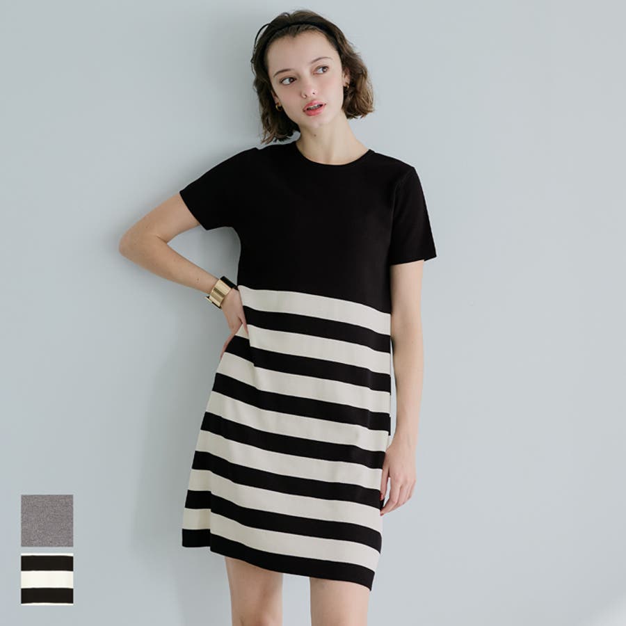 ワンピース ニットワンピ ミニワンピ 半袖 クルーネック 丸首 ボーダー 伸縮性 ストレッチ シンプル カジュアル 25ss コカ COCA coca COCA coca おしゃれ 可愛い きれいめ おとな 大人 女性ファッション 韓国 春服 夏服 春 夏 カジュアル プチプラ 10代 20代 30代 40代 50代 オフィス ホーム シンプル