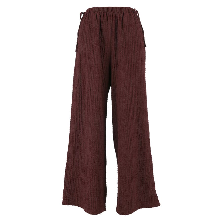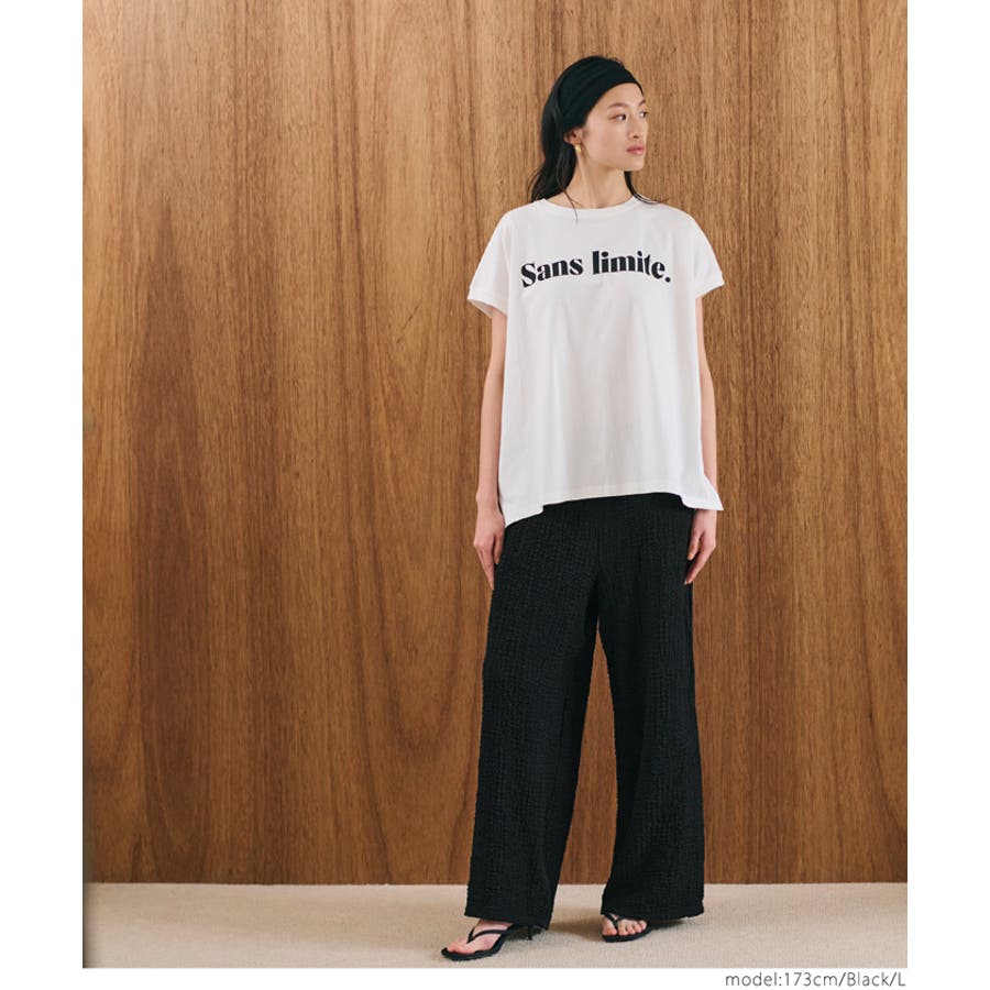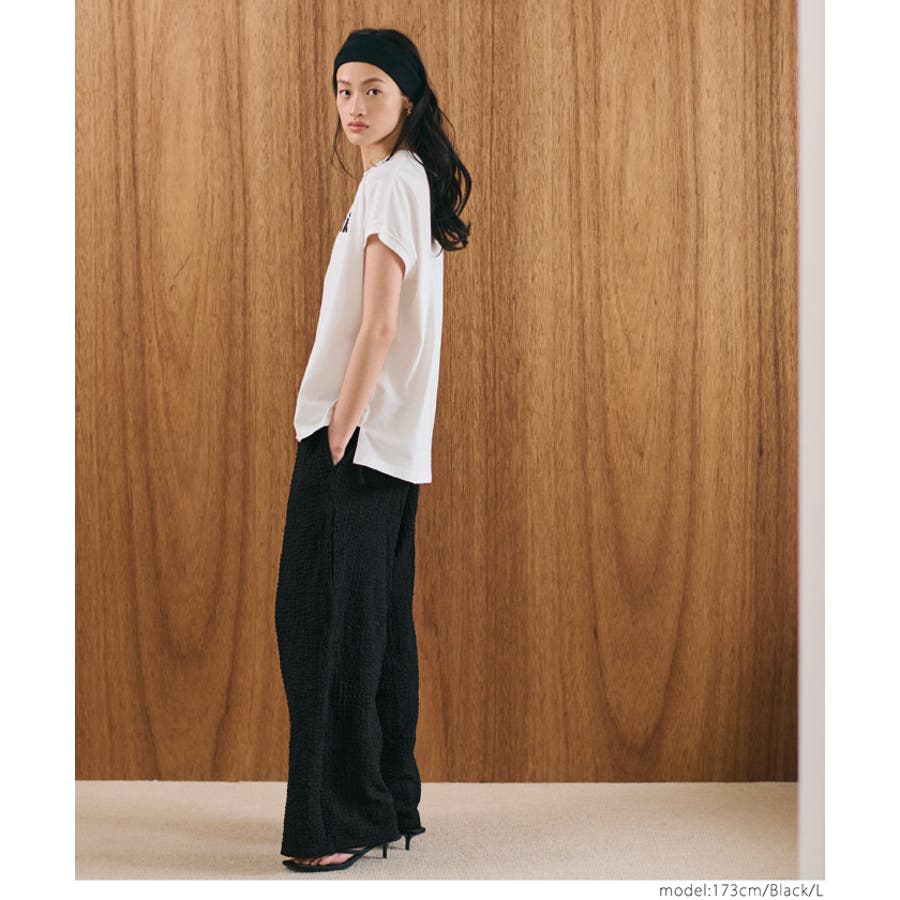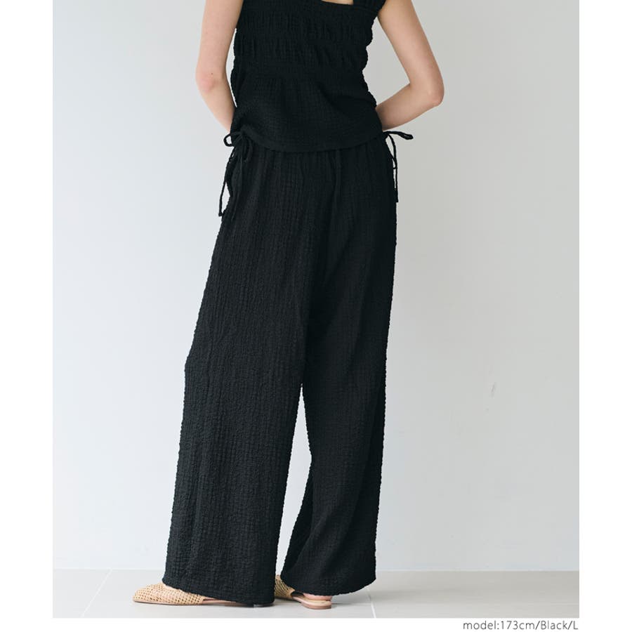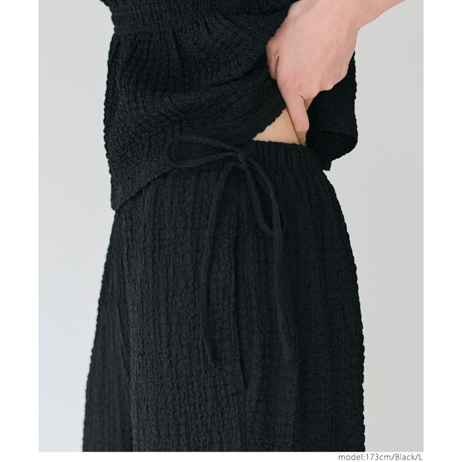 表情のある素材×サイドリボンがポイント。大人のリラックスパンツ