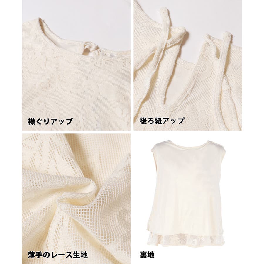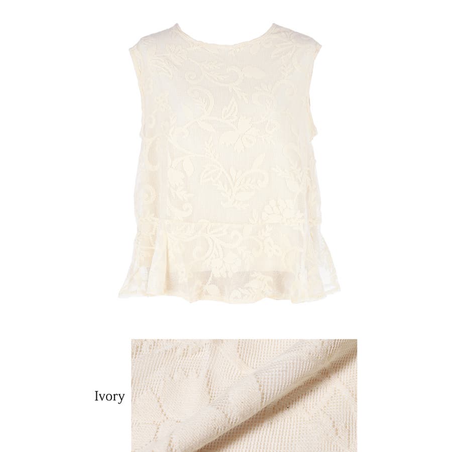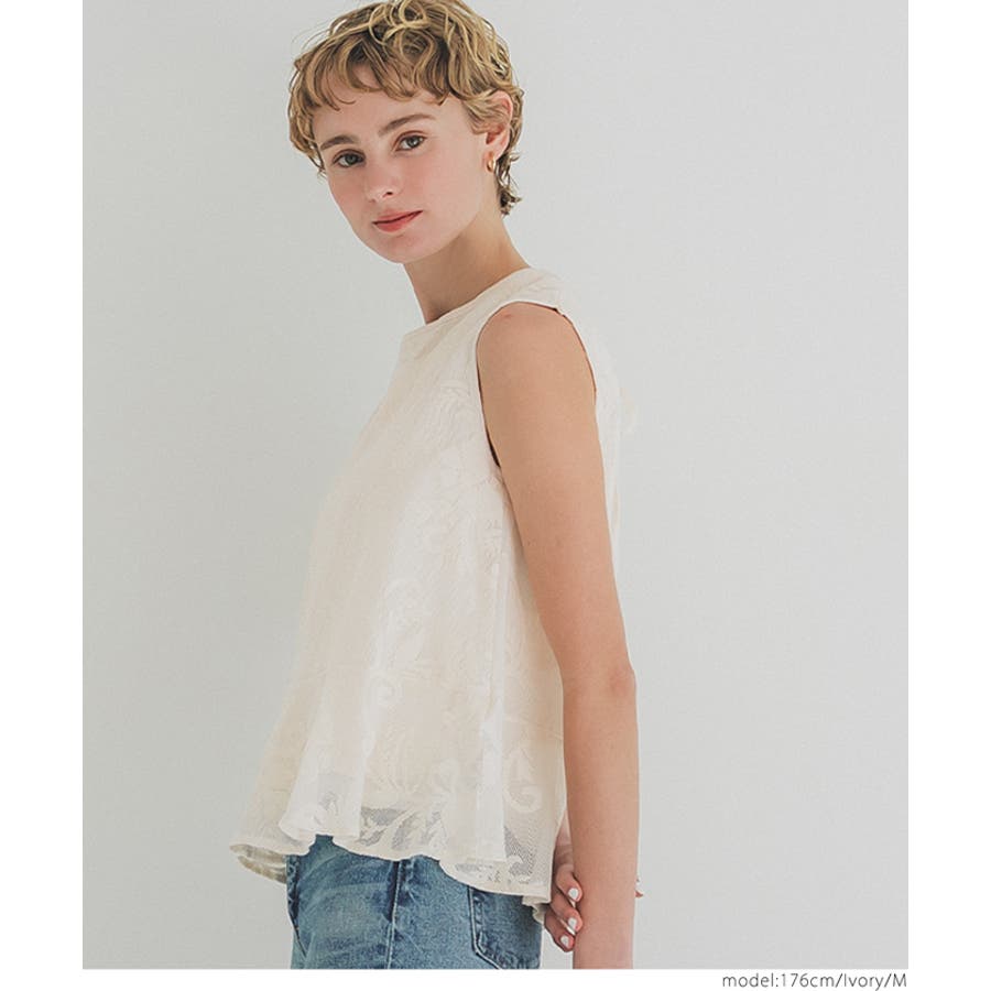 トップス ノースリーブ フロッキー 花柄 レース 透け感 裏地 リボン シースルー 柄 フラワー 2点セット着用可 カジュアル 25ss コカ COCA coca COCA coca おしゃれ 可愛い きれいめ おとな 大人 女性ファッション 韓国 春服 夏服 春 夏 カジュアル プチプラ 10代 20代 30代 40代 50代 オフィス ホーム シンプル