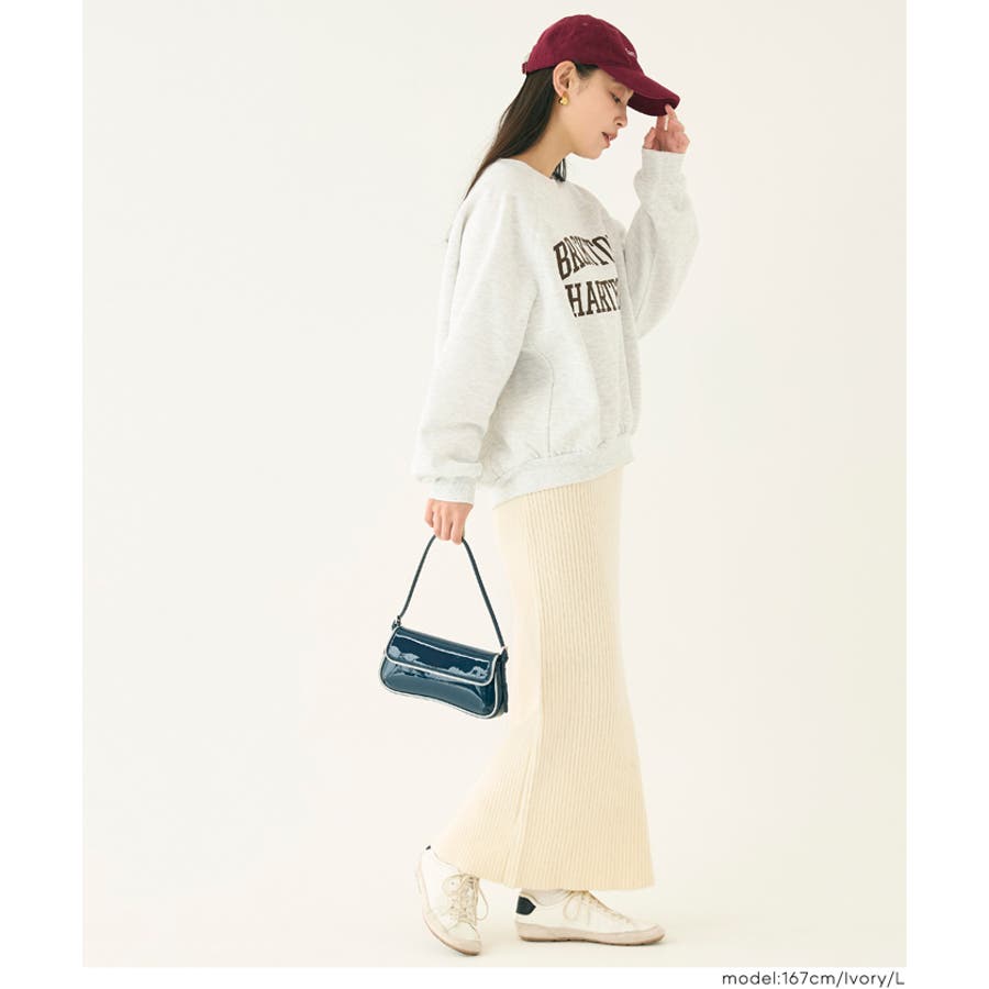 スウェットでカジュアルダウンすれば、日常にも取り入れやすい抜け感のある印象に。