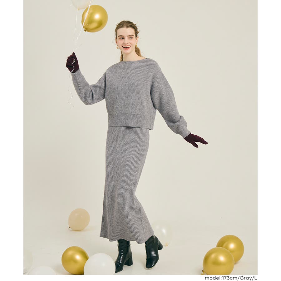 ふんわりニットやショート丈のトップスを合わせて、ホリデーシーズンらしい華やかスタイルに。