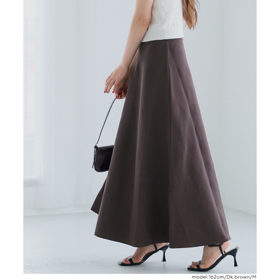 体のラインを拾いすぎず、裾にかけて広がる美しいフレアが女性らしさを引き立てます。