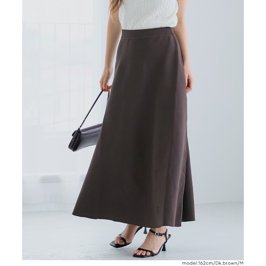 滑らかで上質な風合いが魅力で、ハイゲージ編みのAラインシルエットのニットスカート。