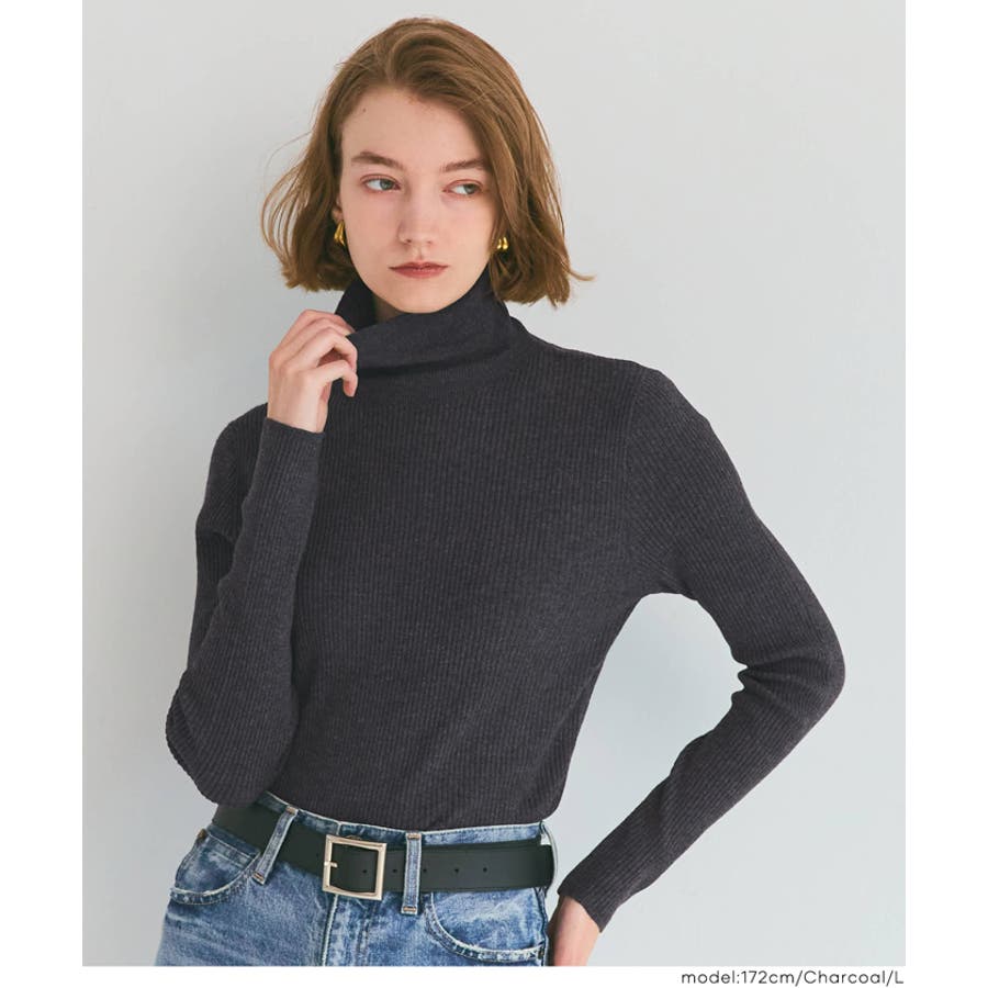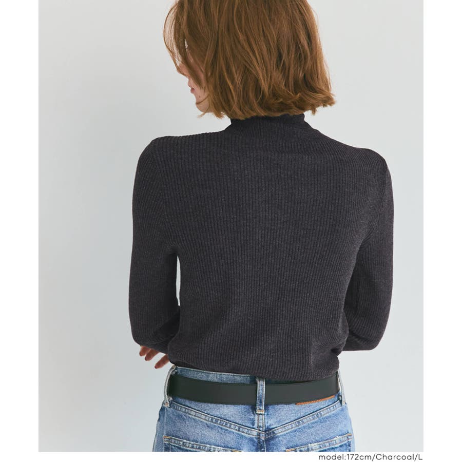 ほどよいフィット感のリブ編みが身体のラインをきれいに見せ、1枚でもインナーでも活躍します。