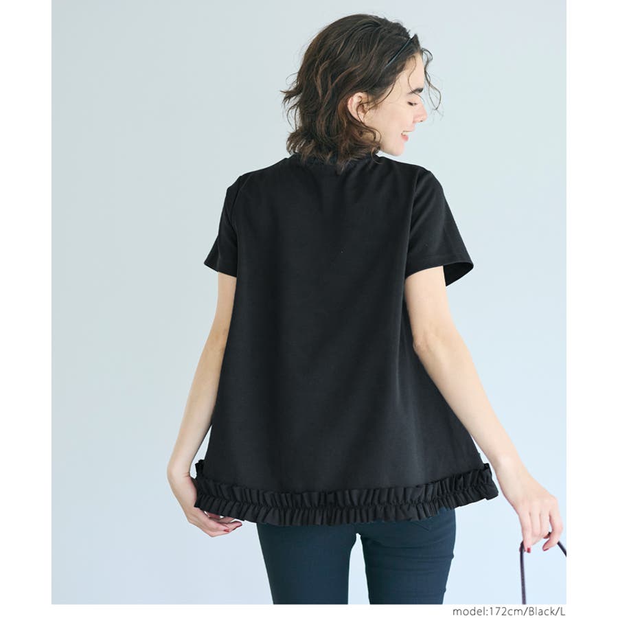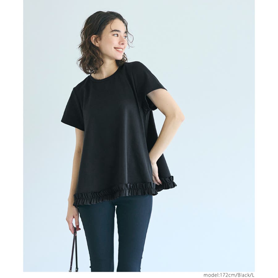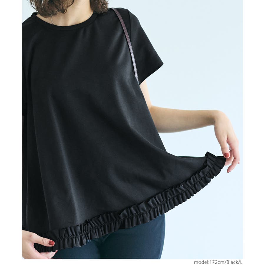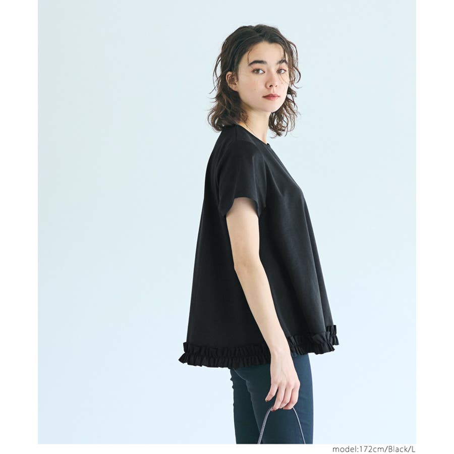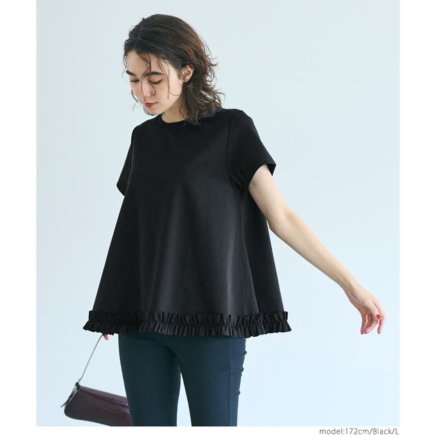 動くたび揺れるフリルヘムが魅力の、Aラインフレアトップス