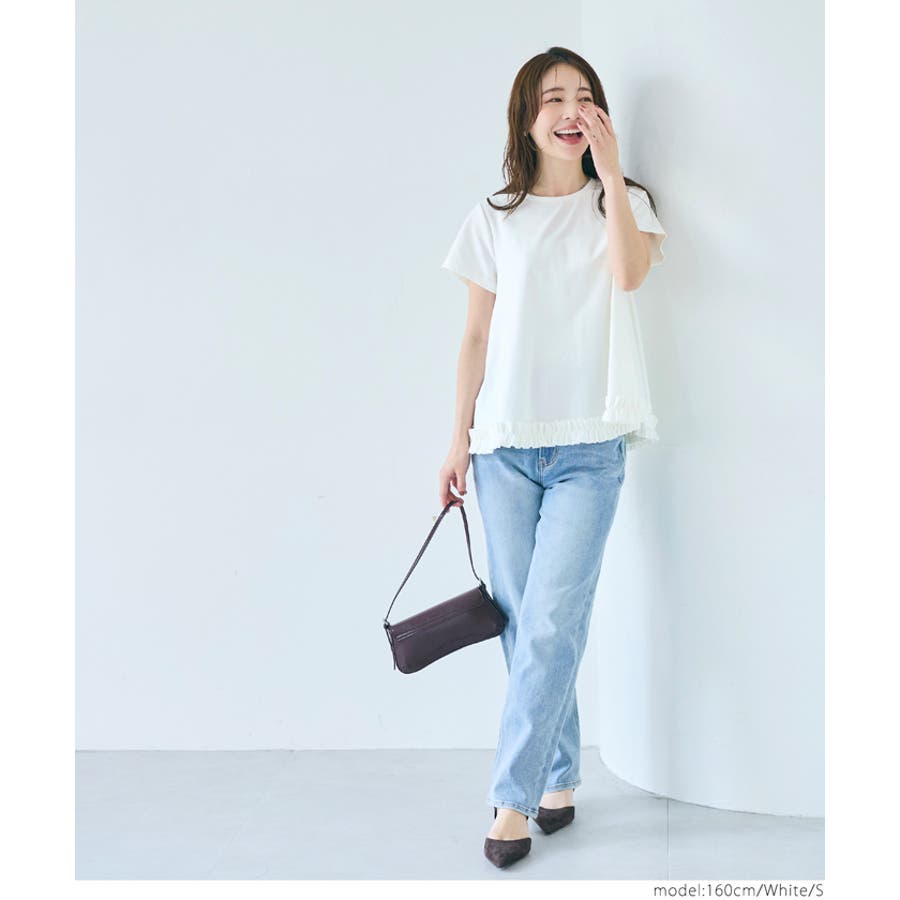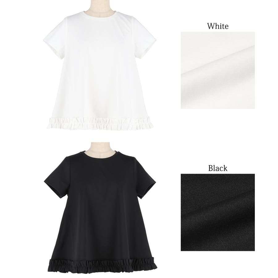 トップス Tシャツ Aライン フレア フリル フリルヘム 半袖 クルーネック 伸縮性 カジュアル きれいめ 25aw コカ COCA coca COCA coca おしゃれ 可愛い きれいめ おとな 大人 女性ファッション 体系カバー 韓国 夏服 夏 秋 秋服 カジュアル プチプラ 10代 20代 30代 40代 50代 オフィス シンプル