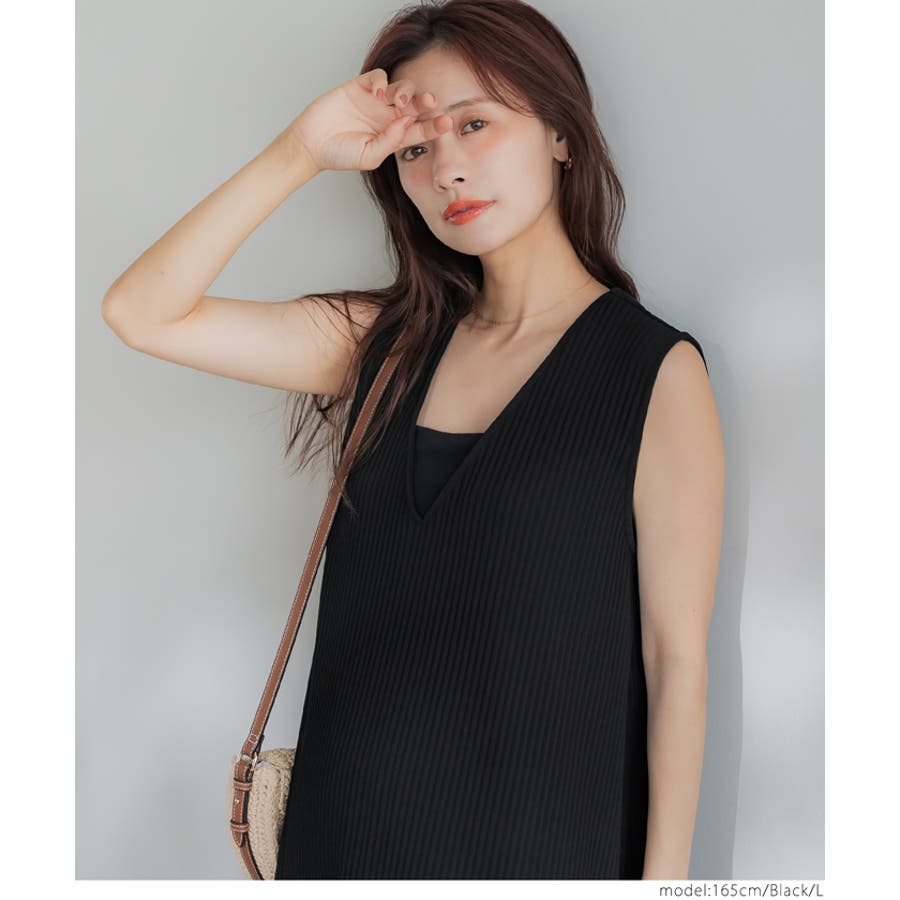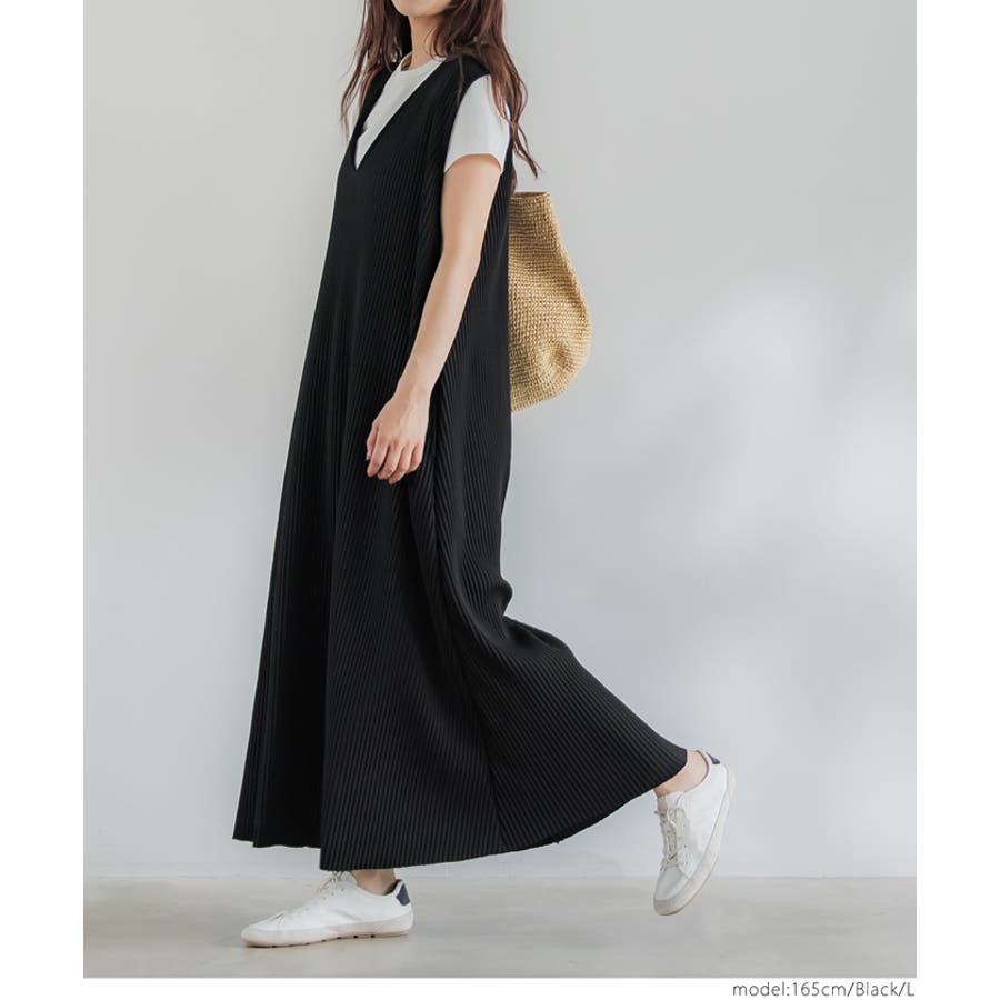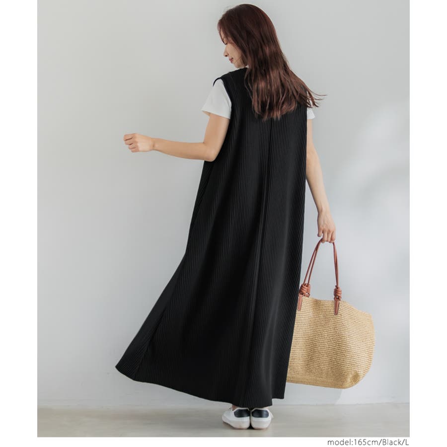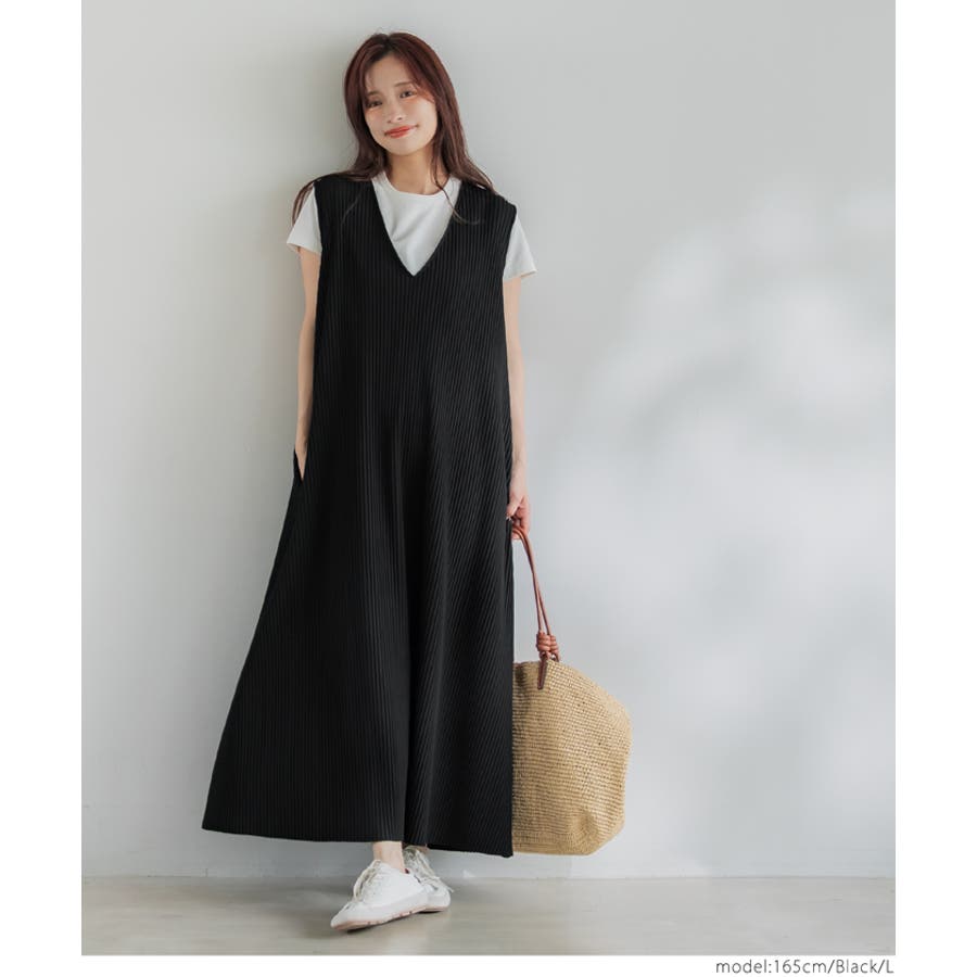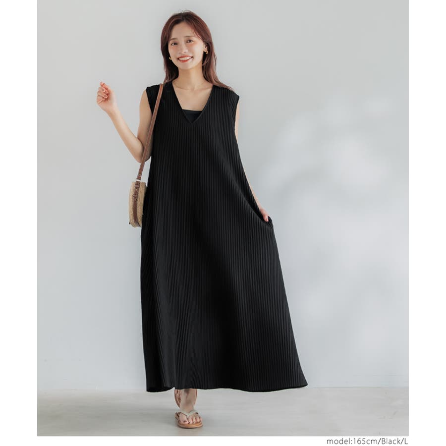 ワンピース ノースリーブ Vネック ロング丈 マキシ丈 リブ プリーツ 無地 シンプル カジュアル ゆったり 25ss コカ COCA coca COCA coca おしゃれ 可愛い きれいめ おとな 大人 女性ファッション 韓国 春服 夏服 春 夏 カジュアル プチプラ 10代 20代 30代 40代 50代 オフィス ホーム シンプル