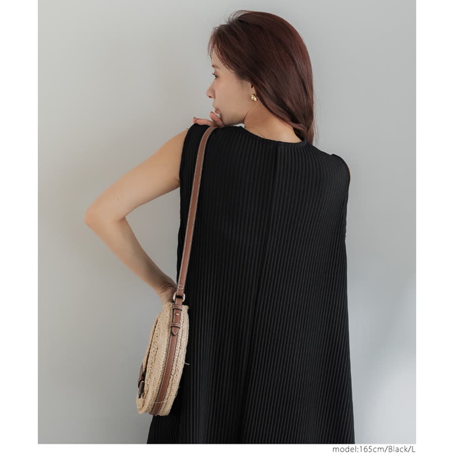 ノースリーブのすっきりとしたデザインで、1枚でもレイヤードでも着回しやすい一着です。