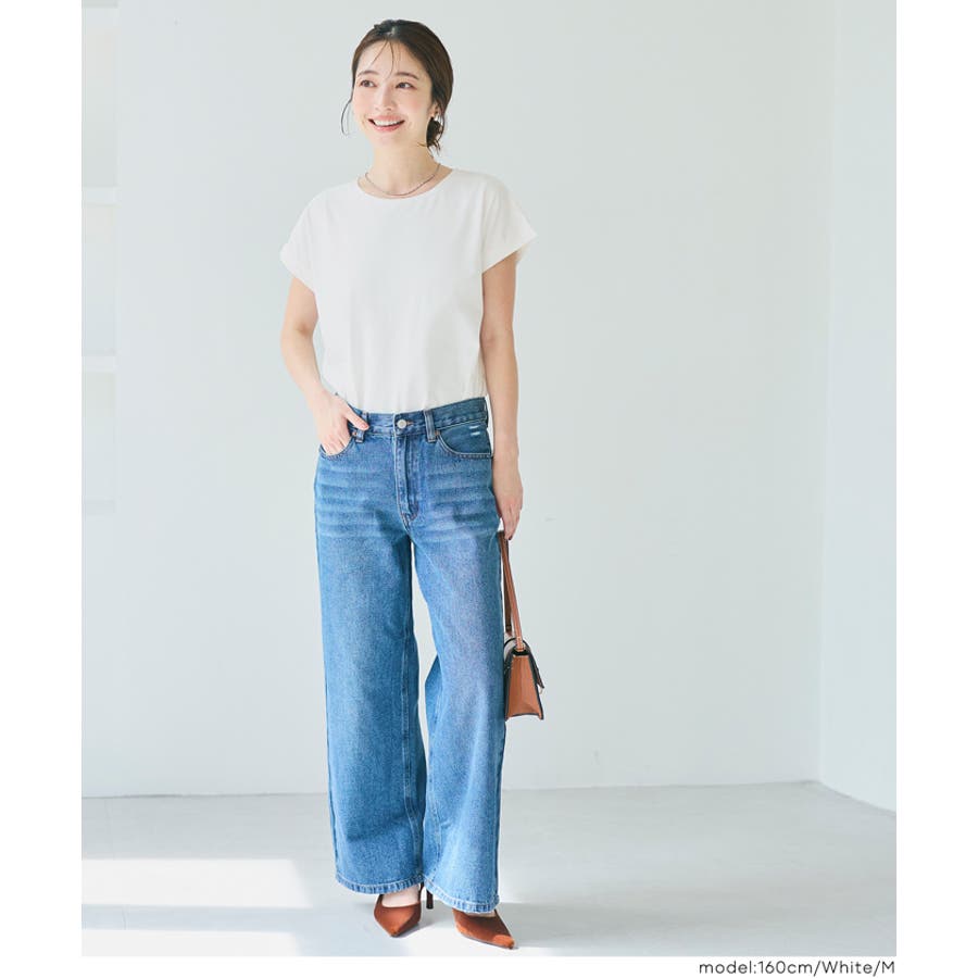 ナチュラルな落ち感があり、デニムを合わせてカジュアルにも、