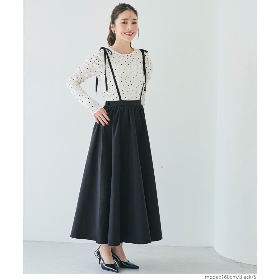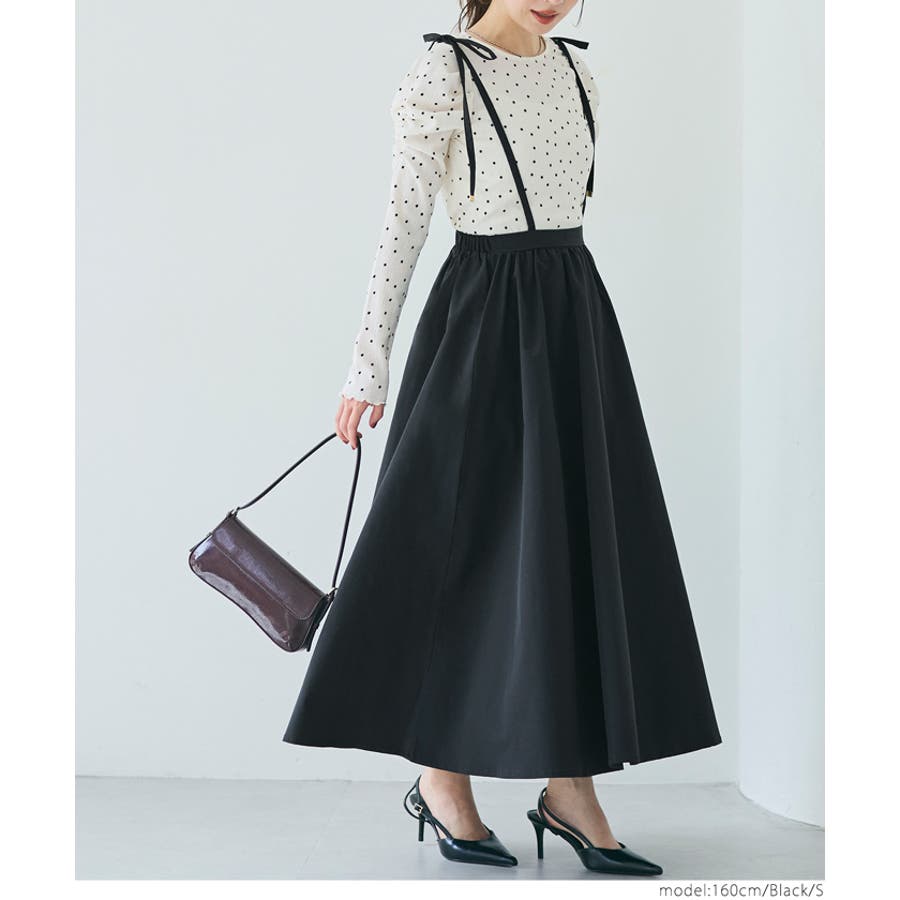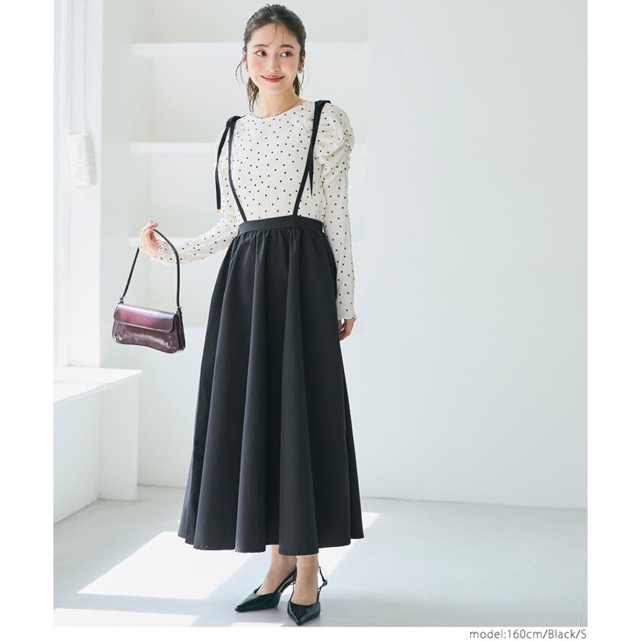 リボンストラップがアクセントのフェミニンフレアロングスカート