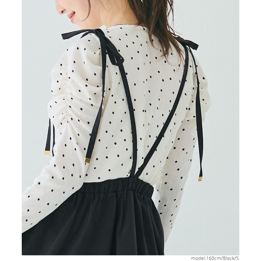 リボンストラップがあることで、シンプルなトップスも一気にフェミニンに格上げ。