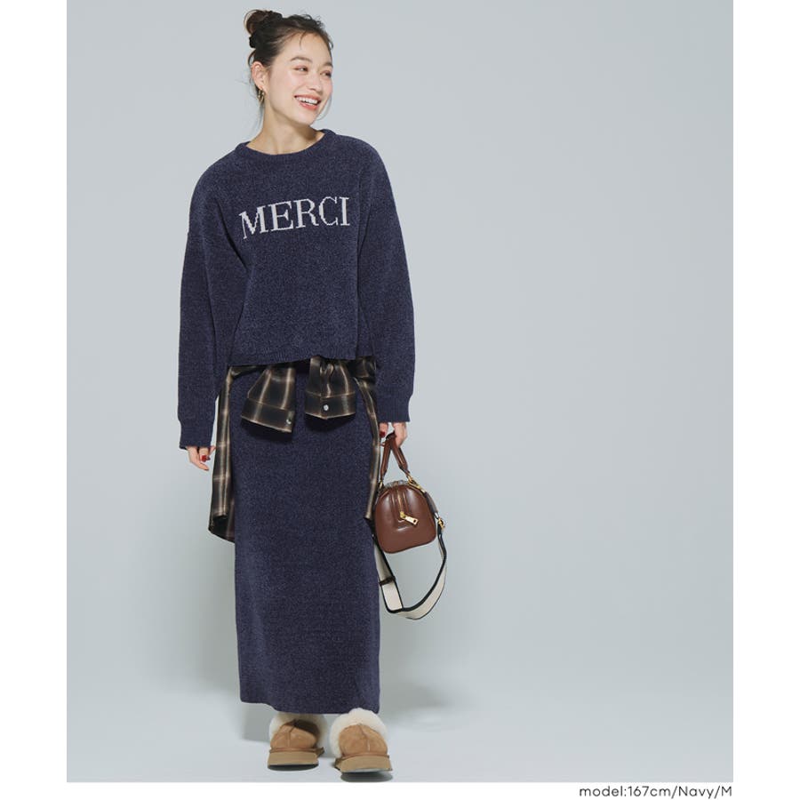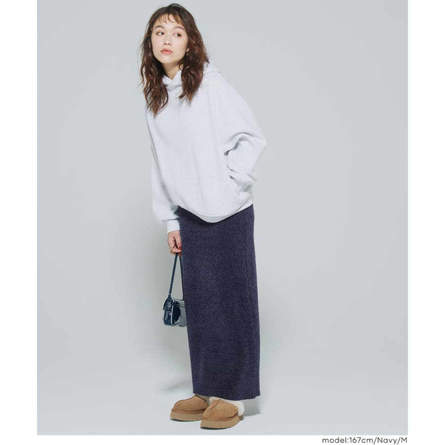 ふんわりとした風合いが魅力のモールニット素材を使用した無地スカート。