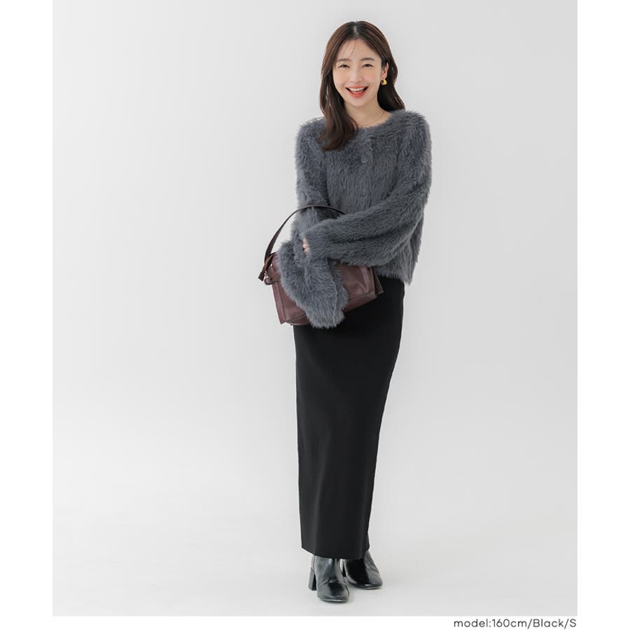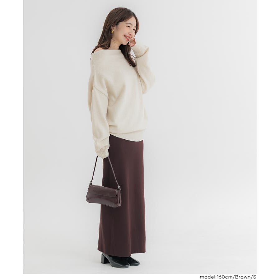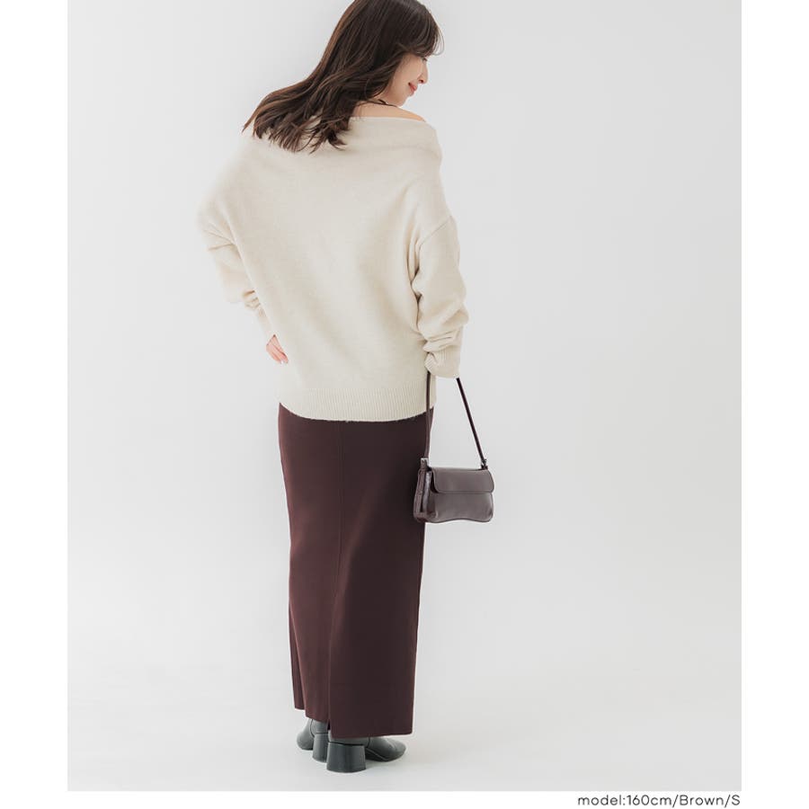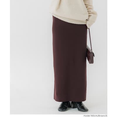 ハイウエストデザインで腰まわりをすっきり見せるニットスカート。