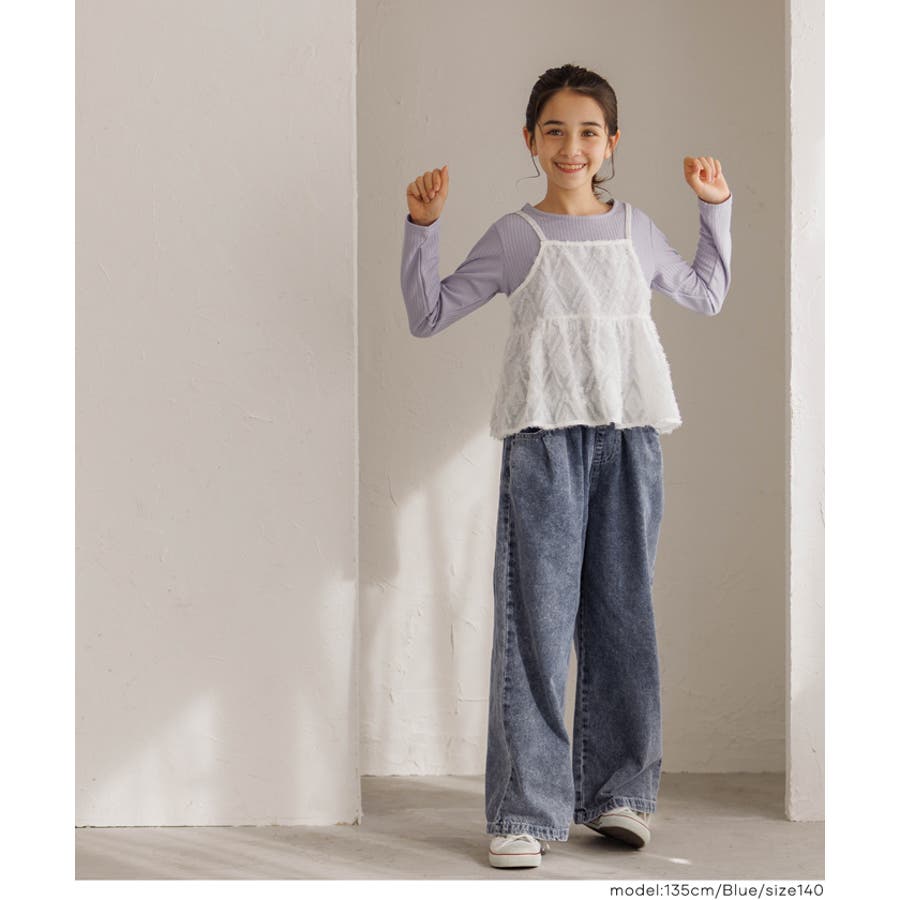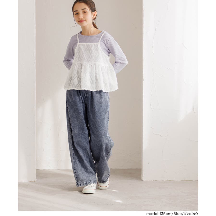 ジュニア ボトムス デニム ジーンズ パンツ 子供服 ワイド ポケット ワイドパンツ カジュアル 女の子 120 130 140 150 コカ COCA coca COCA coca