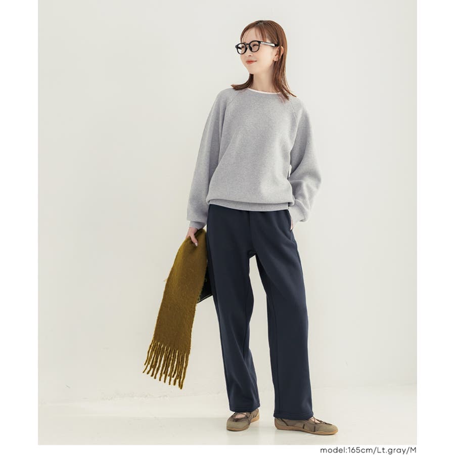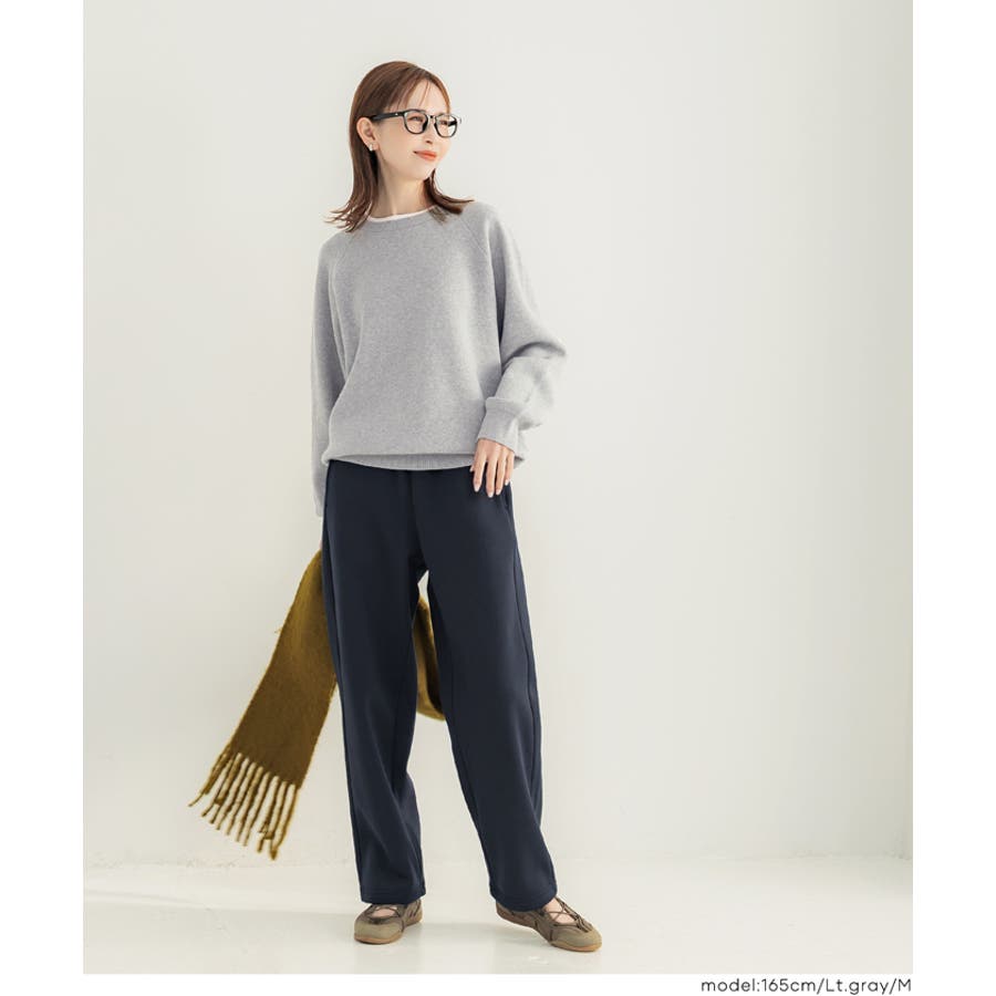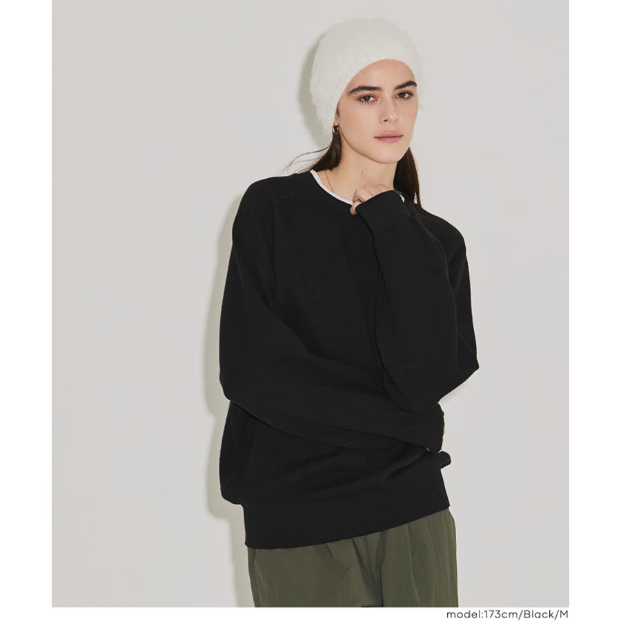 スウェットのようなカジュアルな雰囲気と、ニットならではの上品さを兼ね備えた一枚。