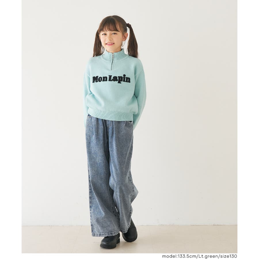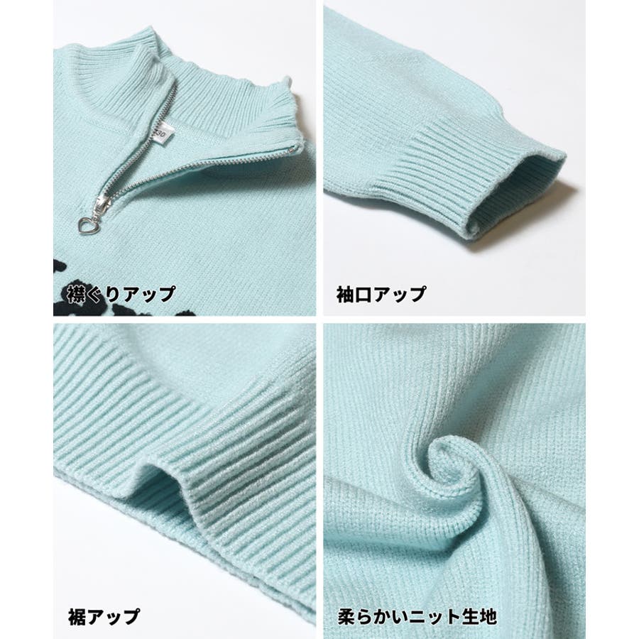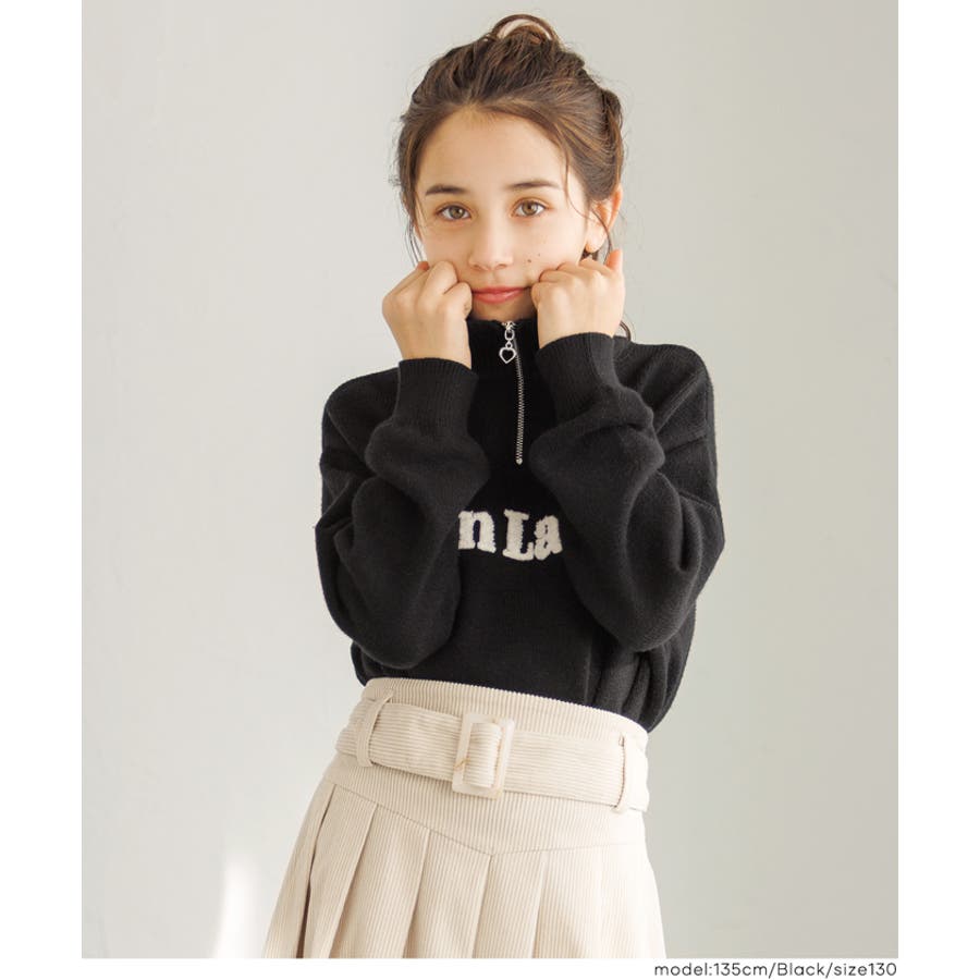 ジュニア トップス ニット ハーフジップ セーター モックネック ロゴ 長袖 学校 通学 女の子 ガールズ 子供服 120 130 140 150 COCA