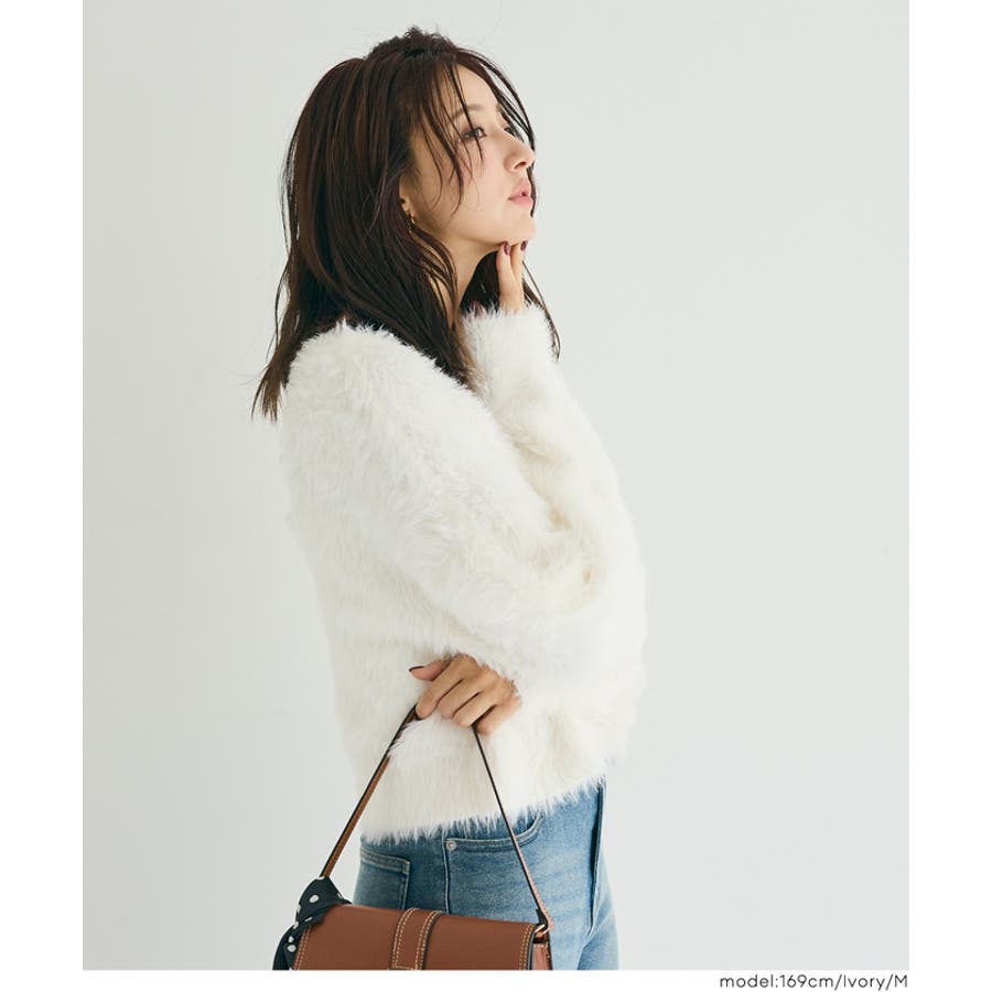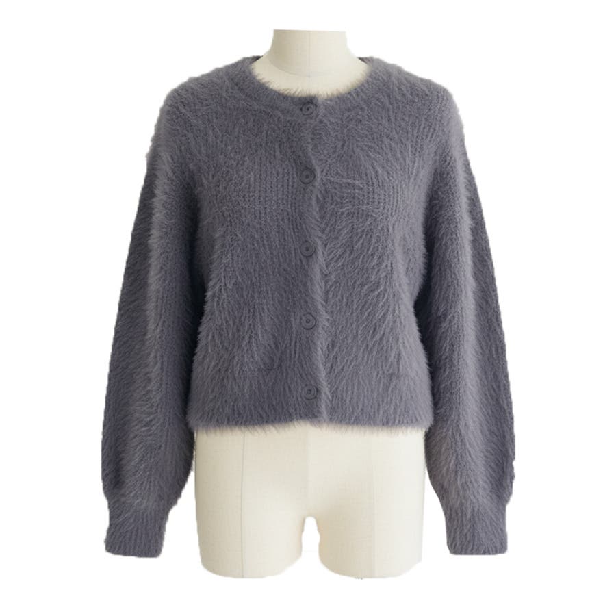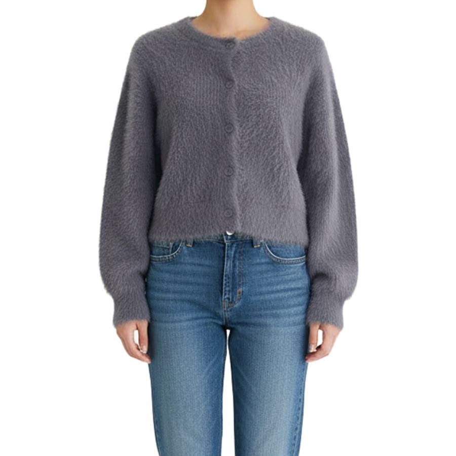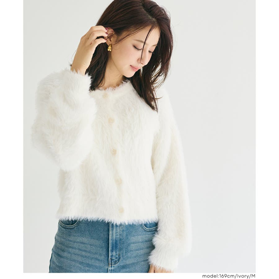 クルーネックシャギーニットカーディガン