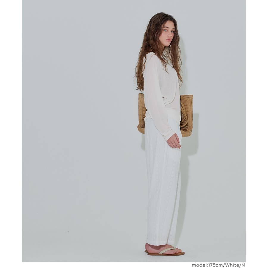 シンプルながらも、シアー素材ならではの抜け感がコーデに奥行きをプラスします。